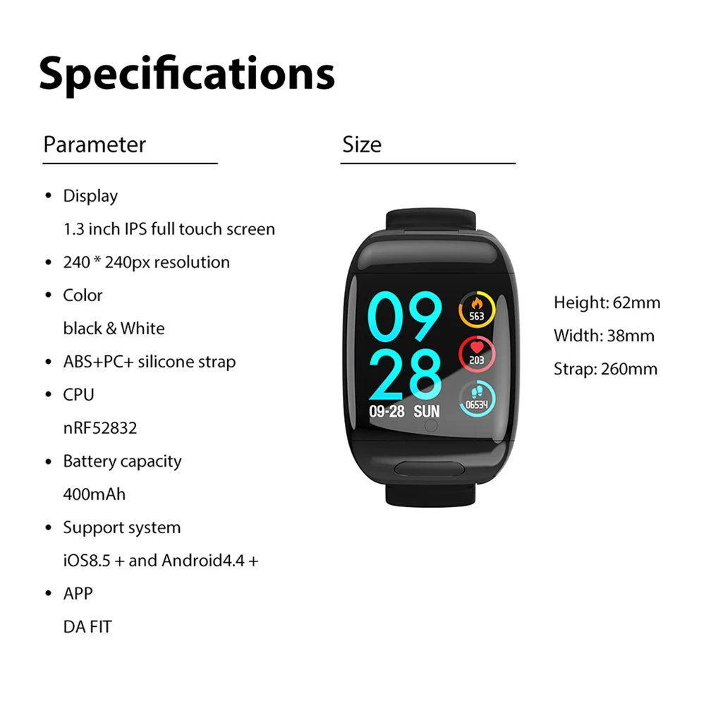 3. Фитнес-трекер, мониторинг сердечного ритма, мониторинг сна, автоматический режим сна, кровяное давление, умное напоминание, напоминание о звонках, шагомер, калории, запись истории, дистанционное управление, фотосъемка, будильник, анти-потеря, напоминание о входящем звонке, сообщения, Whatsapp, уведомление MSM, оповещения о сообщениях приложений, Встроенные беспроводные наушники.