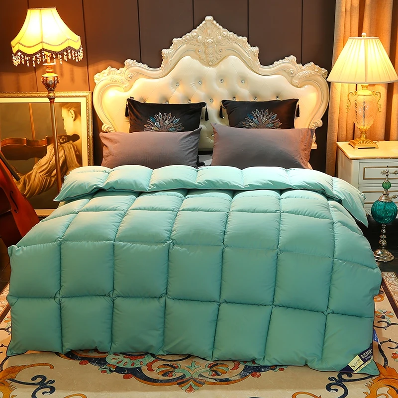 Новое зимнее стеганое одеяло серого и синего цвета, мягкое пушистое утепленное одеяло из хлопка + гусиного пуха, одеяло, полностью 220*240 см, постельное белье для отеля, домашний текстиль