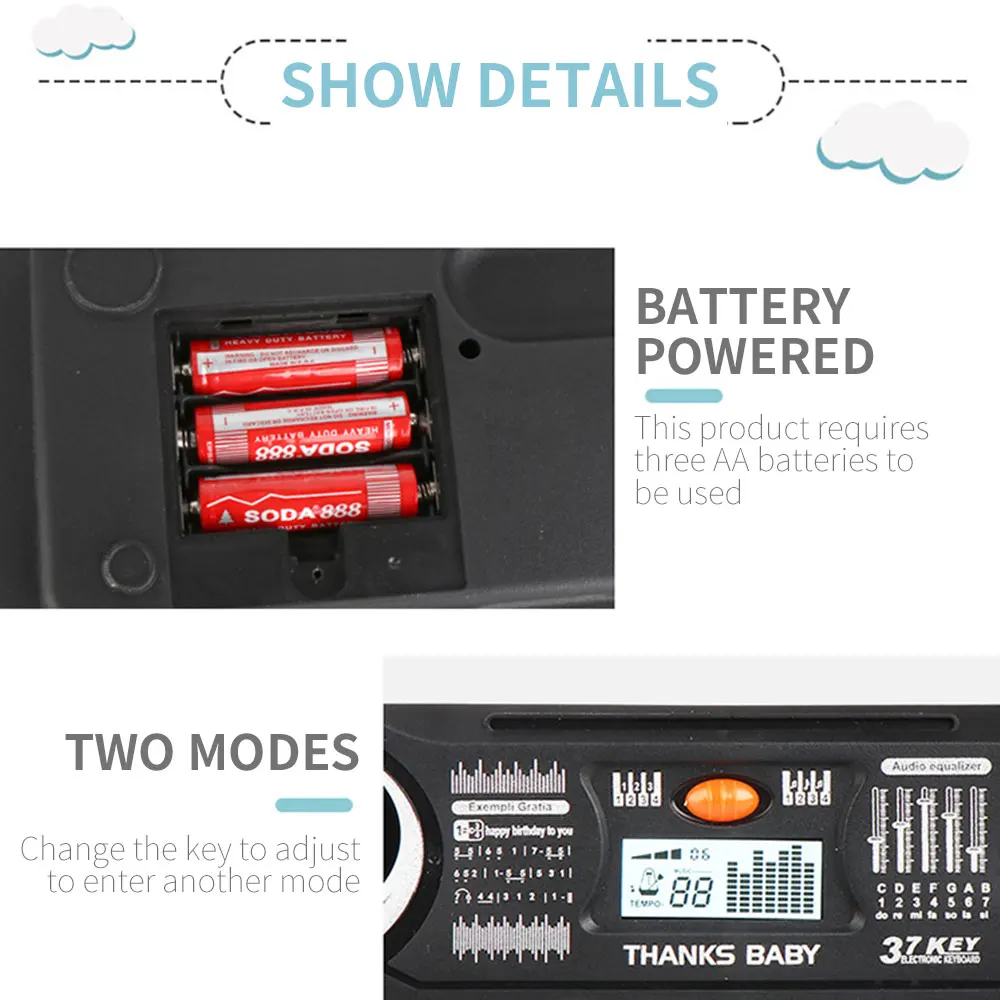 Клавиатура пианино изготовлена из материала ABS, длительное использование не сломается, используйте полностью герметичный дизайн.