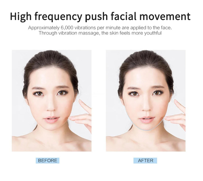 Вибрация составляет 6000 оборотов в минуту. Дайте стимуляцию мышц лица для достижения укрепляющего эффекта.
