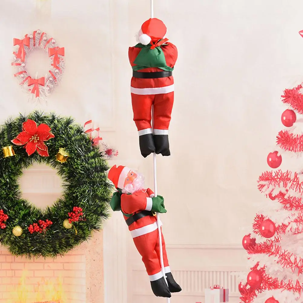 Fun and Interesting: Santa is attached to a rope ladder that when hung makes him climb out he is. Suitable for door, indoor and outdoor use.