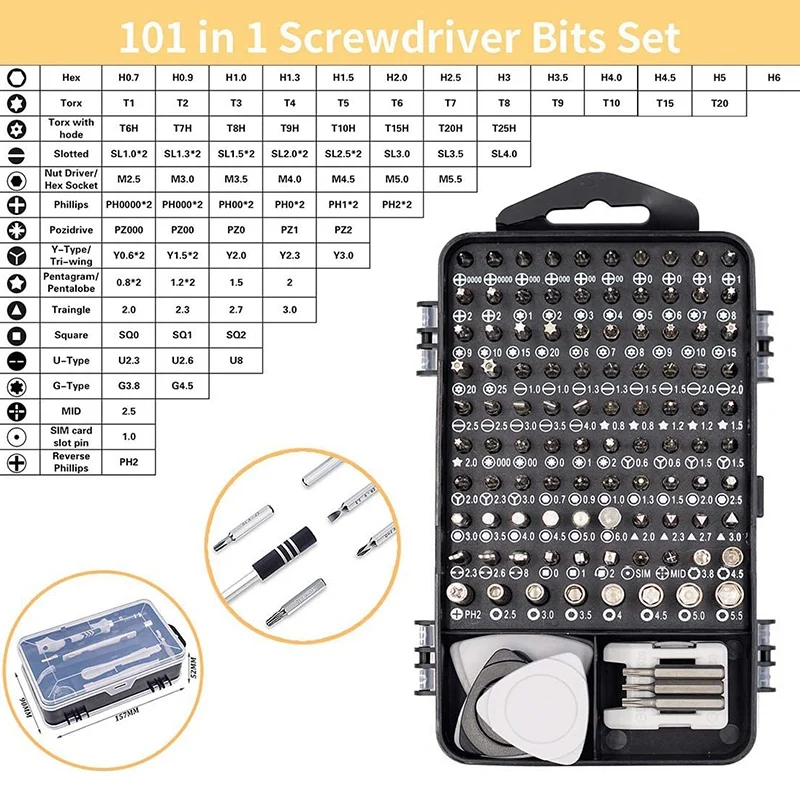 1. Мы исправим все, что захотим. Этот набор отверток 130 в 1 содержит 101 сменный бит и много других аксессуаров и инструментов. Он может в основном удовлетворить все потребности ежедневного обслуживания.