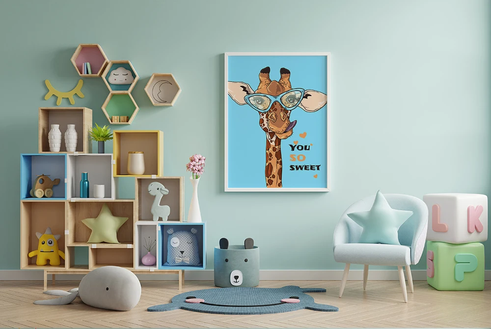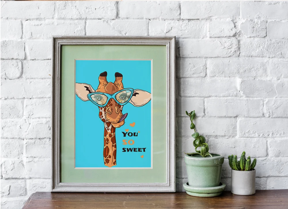 Нарисованные вручную милые животные иллюстрации настенные художественные фотографии и эскизы портрет Забавный Жираф пользовательские очки для детской комнаты декор