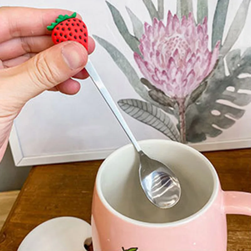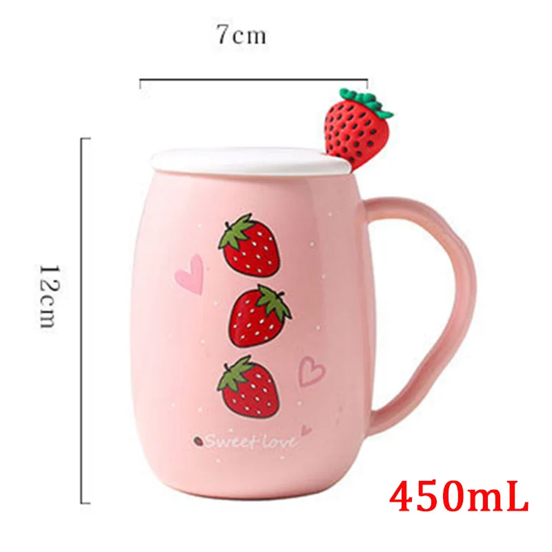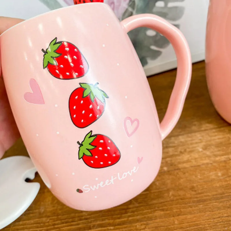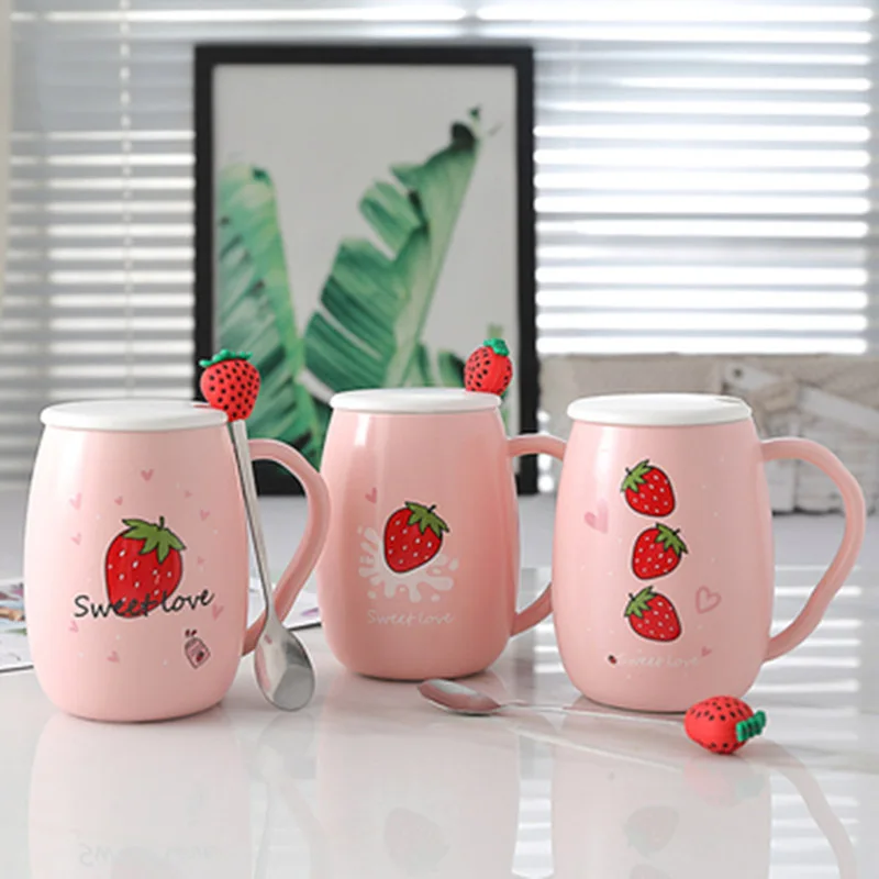 Стиль: милые розовые Клубничные керамические чашки с крышкой и ложкой