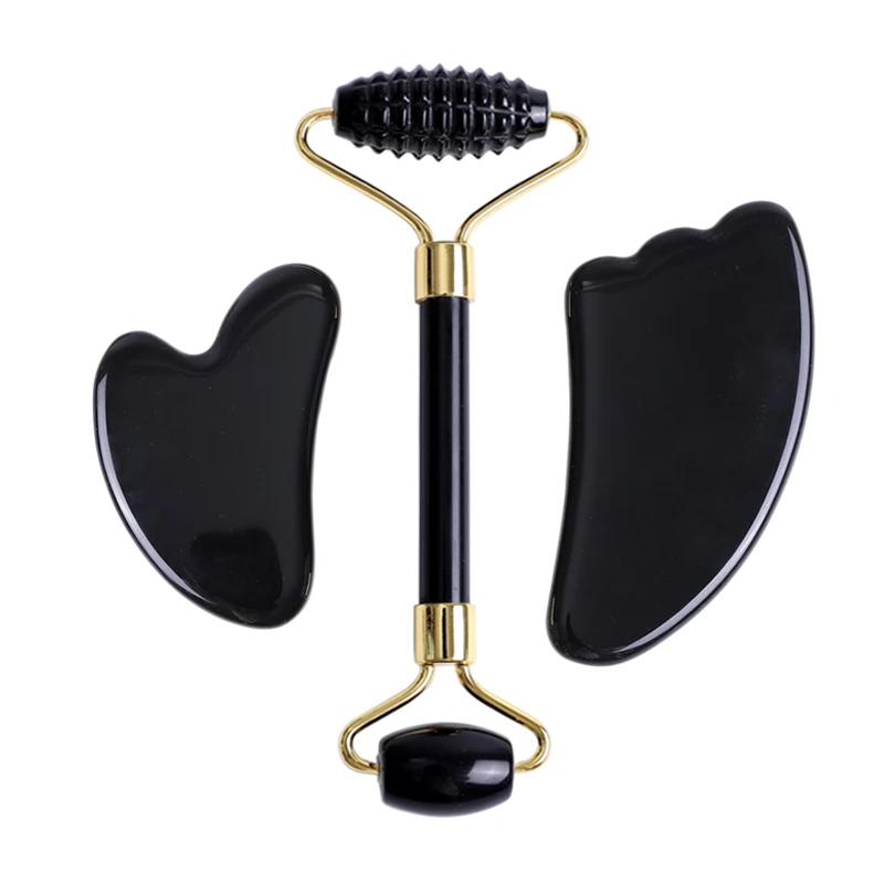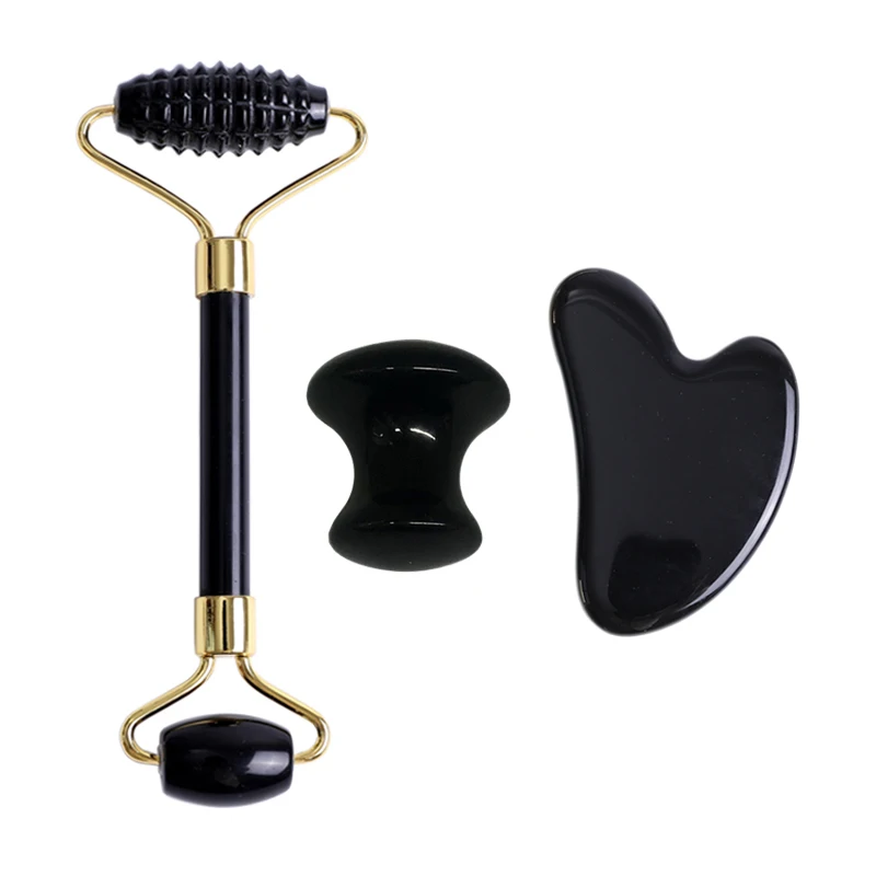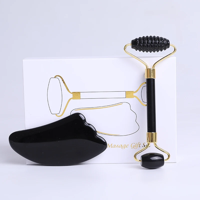 Обсидиан нефритовый ролик для массажа лица гуашь скребок натуральный гуашь камень массажер для лица Gua Sha скребок Инструмент для массажа лица