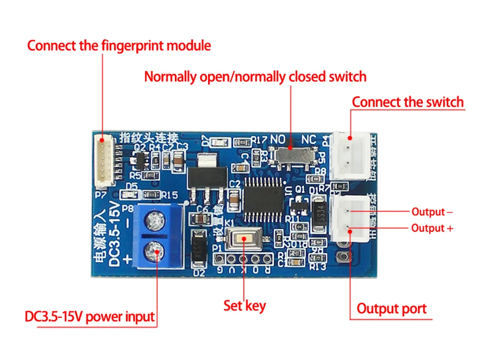 Многофункциональный модуль управления электрическим замком для идентификации отпечатков пальцев; Несколько режимов управления для удовлетворения ваших различных потребностей; Подключаемое соединение, удобная установка; Подходит для модификации пользователя своими руками, используется для контроль доступа, управление автомобилем, электрическое управление, промышленный контроль и другие случаи.