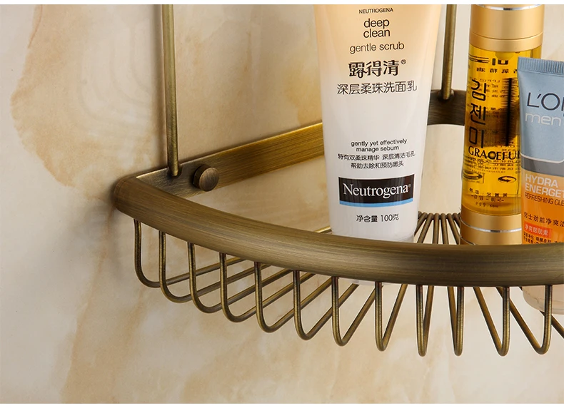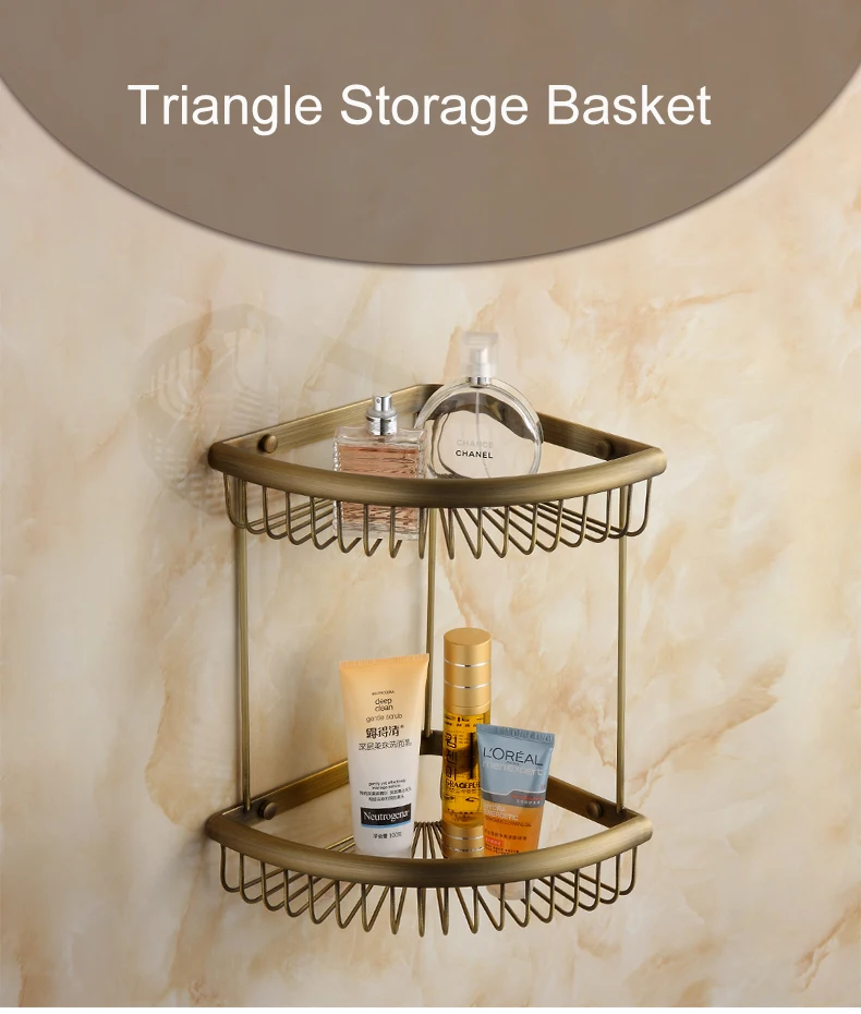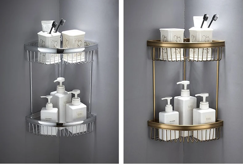 Тип: угловая полка для ванной Стиль: Современный Отделка: хром/античная бронза/золото Материал: латунь Крепление: угловой настенный Размеры держателя для мыла: 300x210x330 мм (11,8x8,2x13 дюймов)