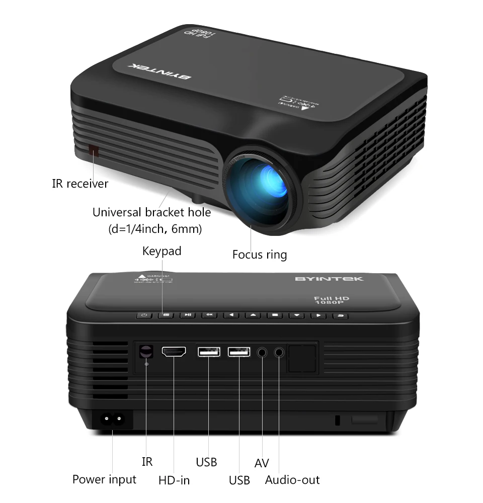 ● Тип дисплея: 5,2 дюймовый ЖК-дисплей● Источник светильник светодиодный, срок службы 30000 часов● Яркость: 300 люмен ANSI● Контрастность: 10000: 1● Разрешение: 1920*1080 Full HD● Соотношение сторон: 16:9/4:3● Коэффициент броска: 1,32: 1● Размер проекции: 50-150 дюйма (предположительно 60-120 дюйма)● Расстояние проекции: 1,2-4,38 мИнтерфейс