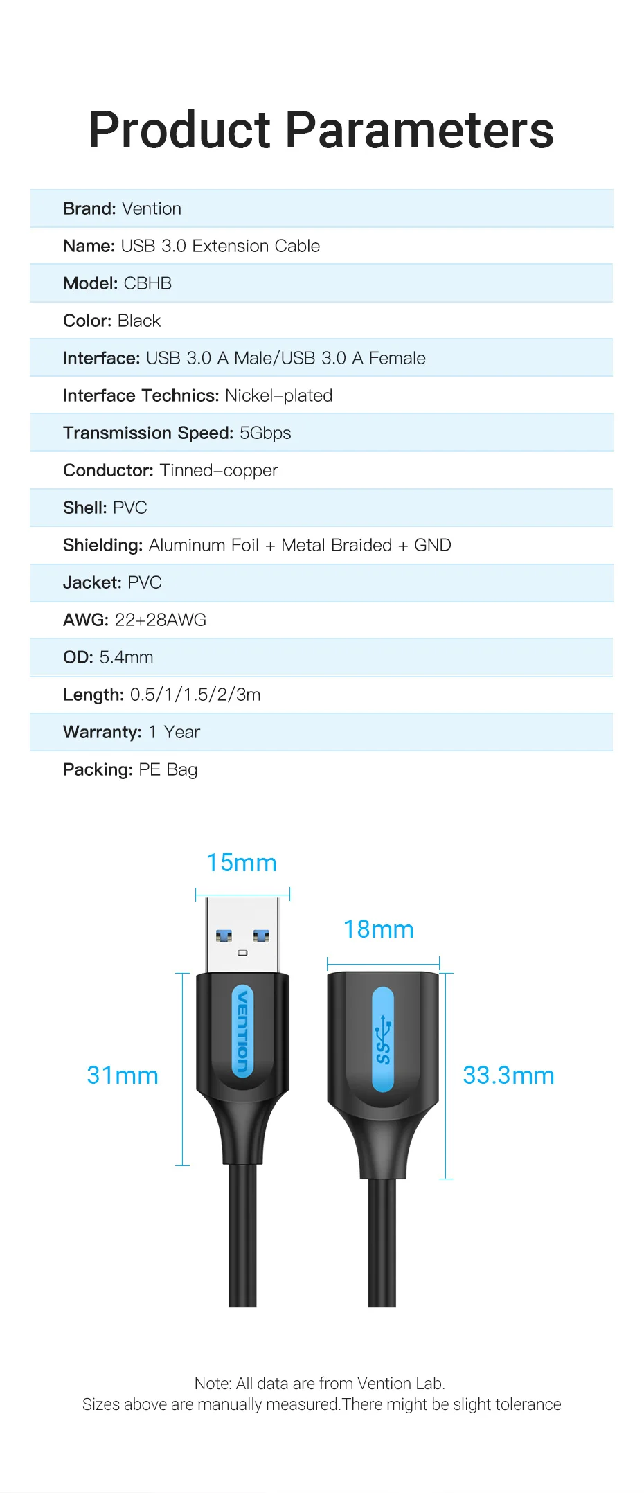 This USB 3.0 extension cable support the speed up to 5Gbps ,10 times faster than the USB 2.0 extension cable and transfer 1GB file in 5 seconds.(Note: All data are from vention lab) Also backward compatible with USB 2.0, 1.1 and 1.0 (speed limited by USB bus). Plug& Play on universal system, no driver required.
