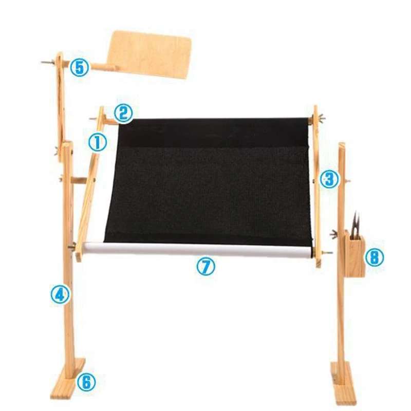 Рамка для вышивки может быть повернута на 360 градусов. Корпус подходит для использования на кровати; Регулировка составляет около 30 см, что подходит для использования на столах и кофейных столах.