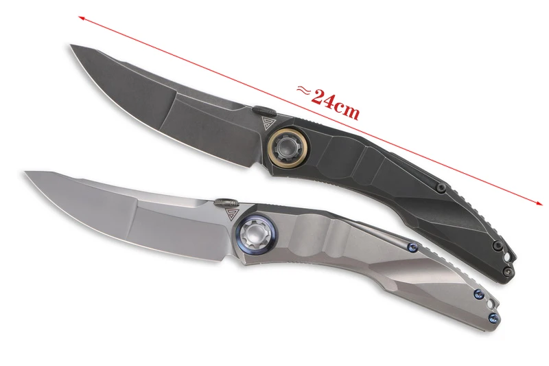 Технические характеристики Общая длина: 9,448 "(240 мм) Длина клинка: 3,858 "(98 мм) Режущая кромка: 3,858 "(98 мм) Толщина клинка: 0,157 "(4 мм) Материал клинка: M390(61hrc) Длина рукояти: 5,314 "(135 мм) Материал рукояти: титановый сплав TC4, резка с ЧПУ. Отделка: высокотехнологичная промывка камня/черное титановое покрытие Вес: 6,3 унции (180 г) Открывалка: шпилька для большого пальца Система: прецизионный роликовый подшипник В подарок полный комплект из винта и медной прокладки + Шпиндельный винт