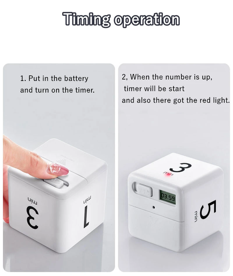 Название продукта: Таймер Куба (батарея в комплект не входит) Количество: 1 шт. Материал: ABS пластиковый корпус + электрический компонент Цвет: белый Модель: 15 20 30 60 мин 1 3 5 10 мин Аккумулятор: встроенный аккумулятор Размер: 6,7*6,7*6,7 см Вес нетто: 150 г Примечание: ручное измерение, есть небольшие ошибки