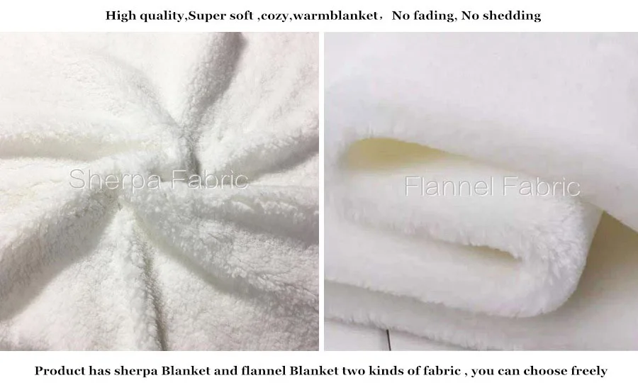 Название: 3D одеяло Материал: Этот продукт имеет шерпа одеяло и фланелевое одеяло два вида ткани, вы можете выбрать свободно Характеристики продукта: очень мягкий, уютный, теплый, одеяло Толщина: двойное утолщение Стирка: Машинная стирка в холодной воде, сушка при низкой температуре, Избегайте прямого нагрева, не используйте отбеливатель повод: диван, диван, кровать, путешествия, авиаперевозки, кемпинг, пикник, дом, отель Сезон: весна, лето, осень, зима Размер: 70x10 0 см/150x10 0 см/150x12 0 см/150x13 0 см/150x20 0 см/150x220см