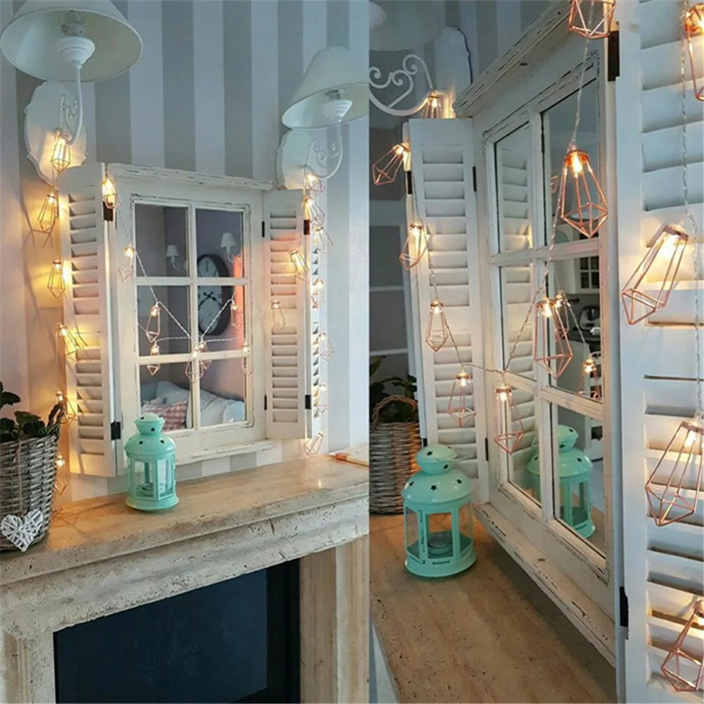 Розовое золото LED Алмазный Сказочный светильник в стиле ретро, из железа, металла вечерние свадебные рождественские фонарь для оформления дома