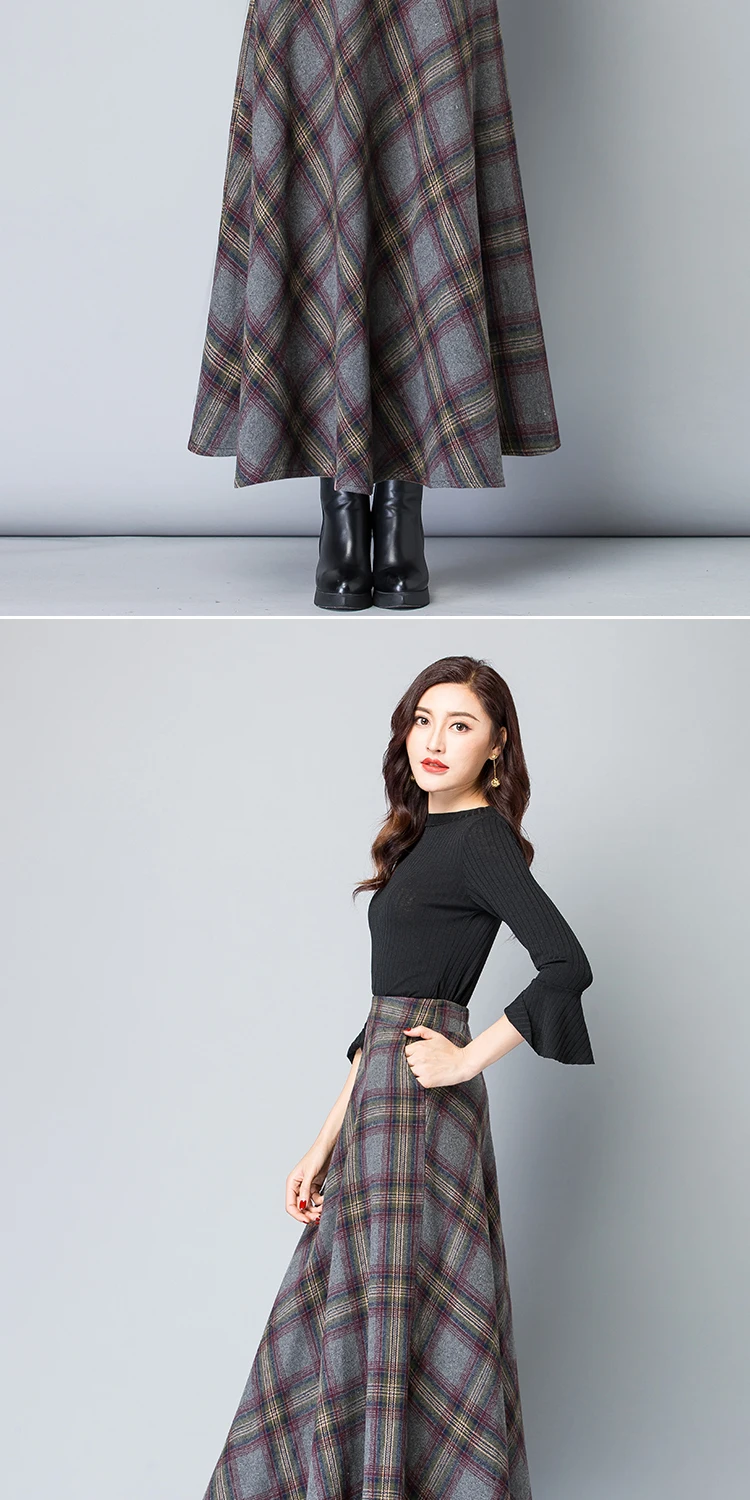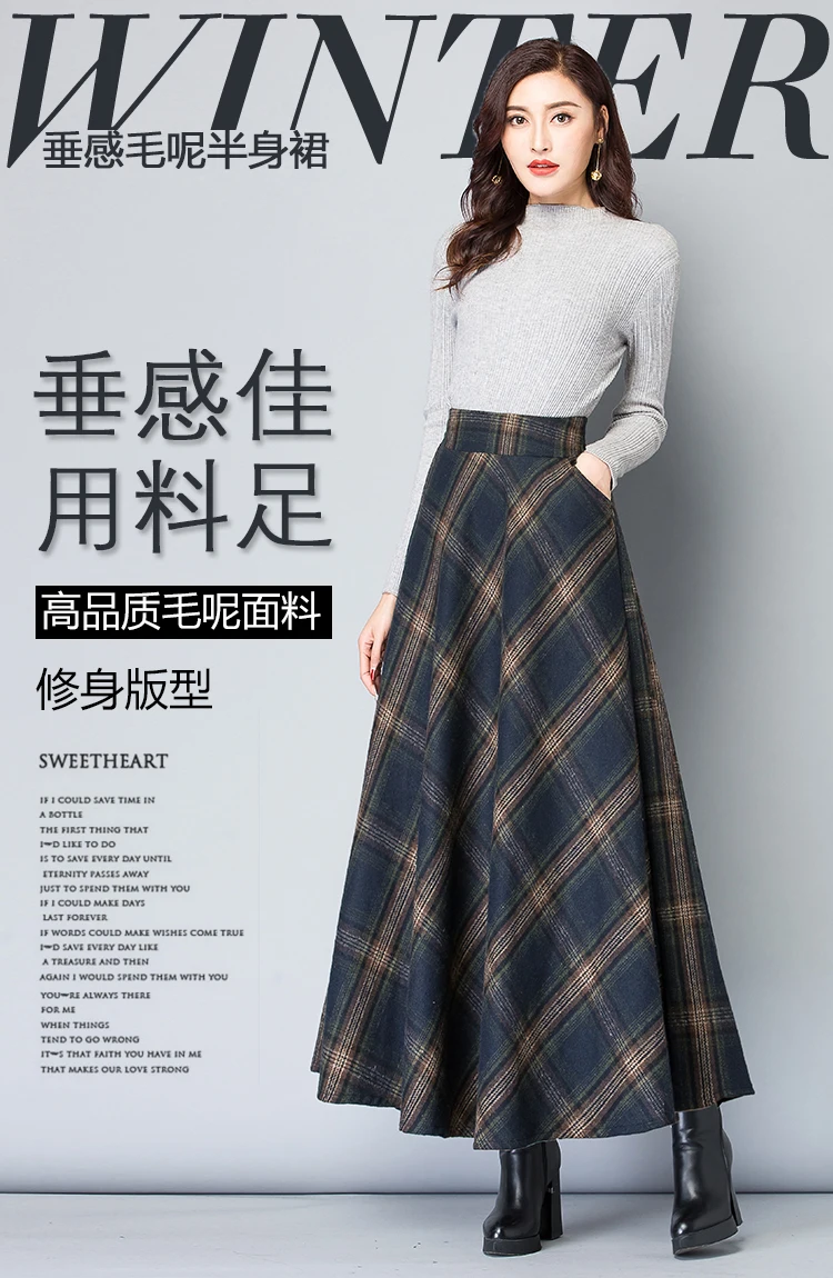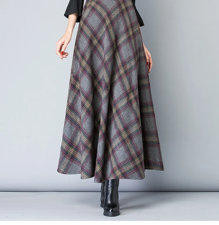 Винтажная клетчатая трапециевидная юбка TingYiLi, Женская юбка в клетку с высокой талией, элегантная офисная длинная юбка в Корейском стиле для осени и зимы