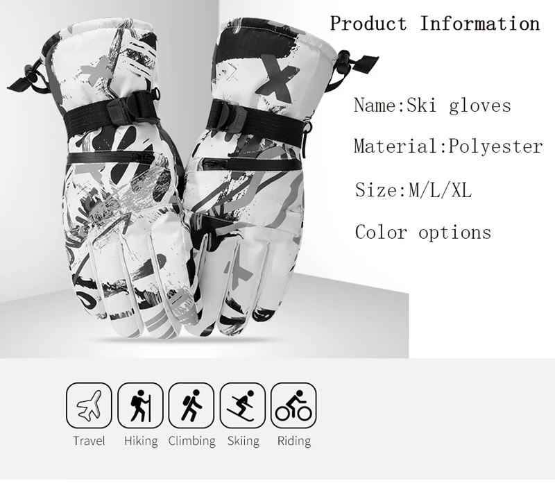 Особенности: 1. Водонепроницаемый слой отводит влагу от фитиля и помогает рукам оставаться теплыми и сухими во время физических упражнений и игр. 2. Поддержка сенсорного экрана-Совместимость с 3 пальцами = большой палец, указательный палец, средний палец. 3. Держатель перчаток браслеты: оснащен одной парой держатель перчаток браслеты, в чехол перчатки теряются при снятии перчаток, и предотвратить внезапное выкидывание в экстремальных быстрых зимних видах спорта. Посылка включает в себя: 1 пара * лыжные перчатки