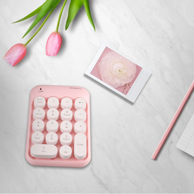 Стильный и тихий дизайн, круглый колпачок для ключей использует гладкую и гладкую технологию кромки, чтобы ваш мобильный телефон и стол выглядели новыми; Гладкая клавиатура и мышь, бесшумные клавиши с низким ключом обеспечивают удобный и плавный ввод текста