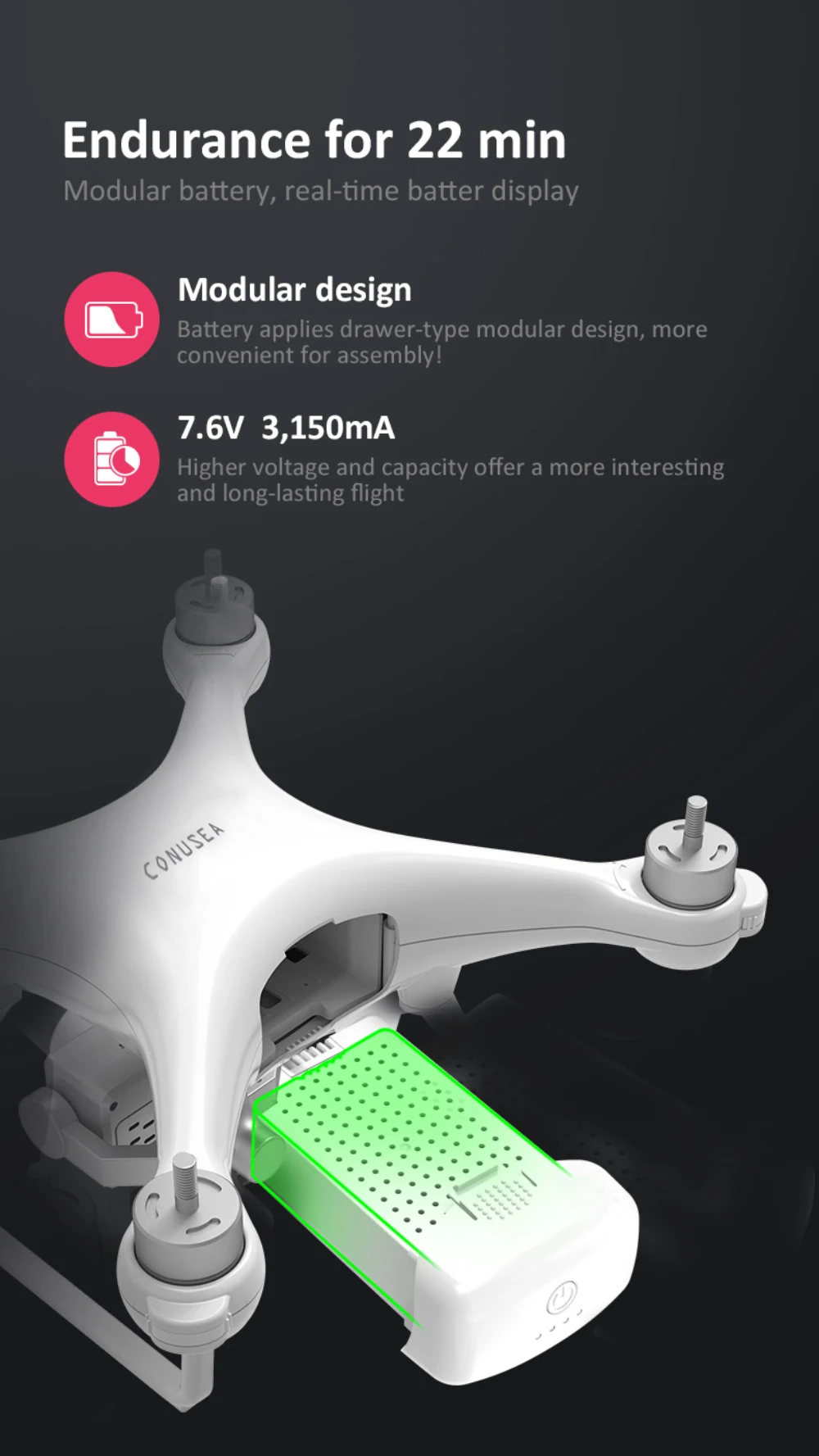 - Максимальное время полета 22 мин. Повышенной емкости 7,6 V 3150 мА/ч, интеллигентая (ый) батарея производит до 22 минут времени полета.