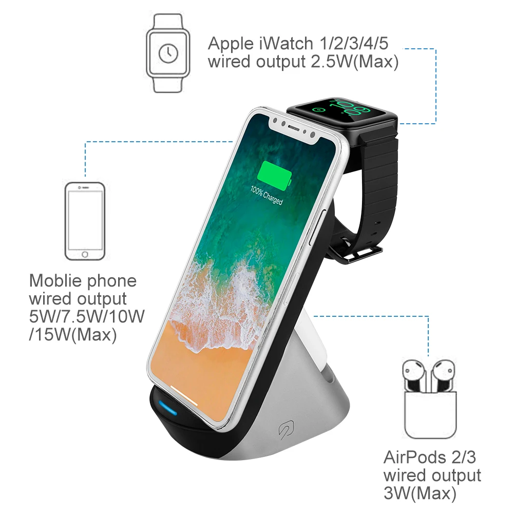 3 в 1: 3 в 1 Беспроводное зарядное устройство-это не только мобильный телефон с держателем, но и мобильный телефон с функцией зарядки наушников одновременно.