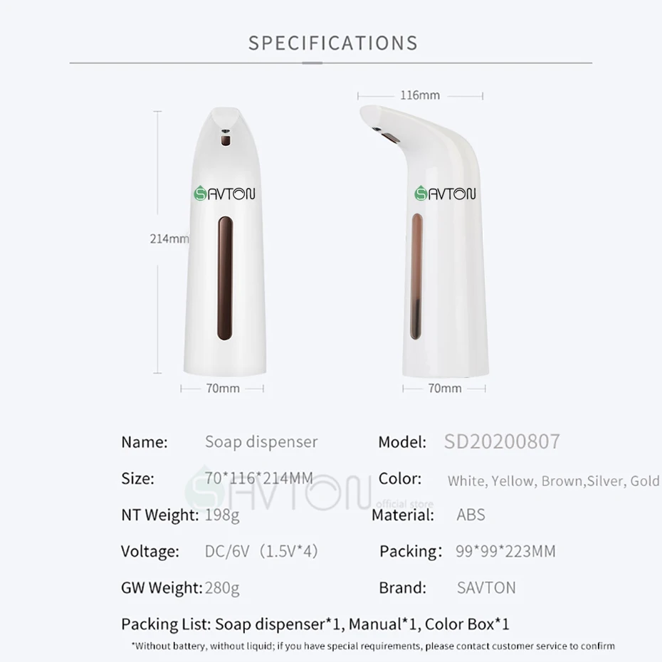 Автоматический диспенсер для мыла SAVTON, Бесконтактный Диспенсер, дезинфицирующее средство, ручная стирка для ванной комнаты, кухни, умный диспенсер, безопасность