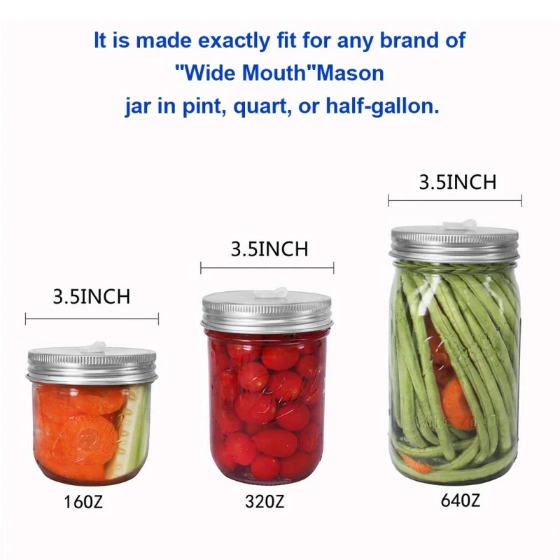 Широко используются в: не содержит воды воздуха-тип замка для бродильного Чана крышкой, 3,4 дюйма в диаметре, подходит для ферментеры для изготовления ювелирных изделий кислой капусты, кимчи и других ферментированный пробиотических продуктов в широкогорлый детский консервных банок, может автоматически выводить газ при ферментации овощей дома, также может использоваться для хранения кофейных зерен