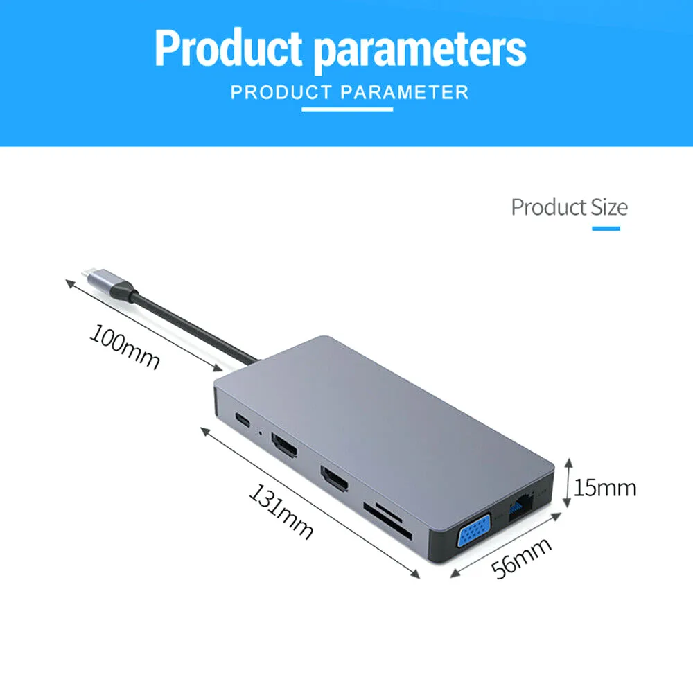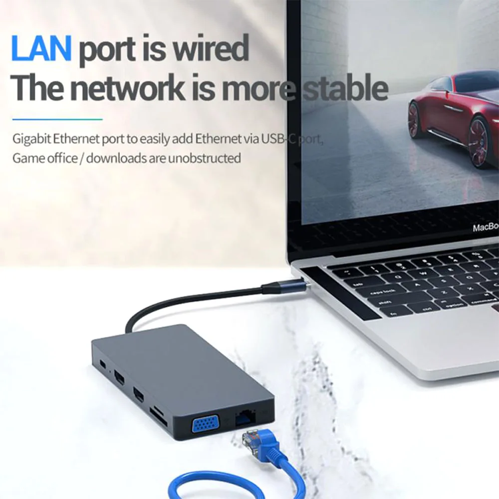 Tebe 12 в 1 USB C к двойному HDMI 3 * usb-хаб адаптер для Mac HP RJ45/VGA/3,5 мм аудио/2 * Type-c/TF/SD слот для карт Type-c концентратор сплиттер