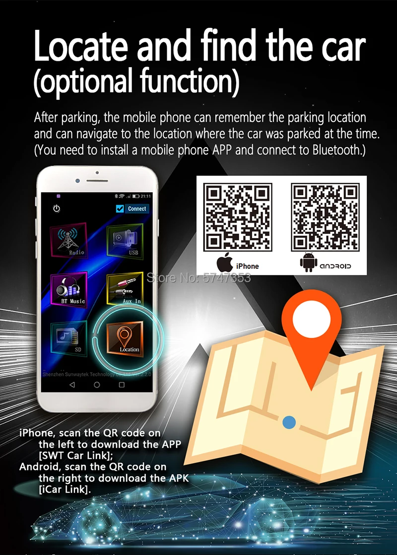 3) после выключения зажигания автомобиля сотовый телефон (приложение карты) будет запоминать положение автомобильного радио, это поможет вам найти автомобиль.