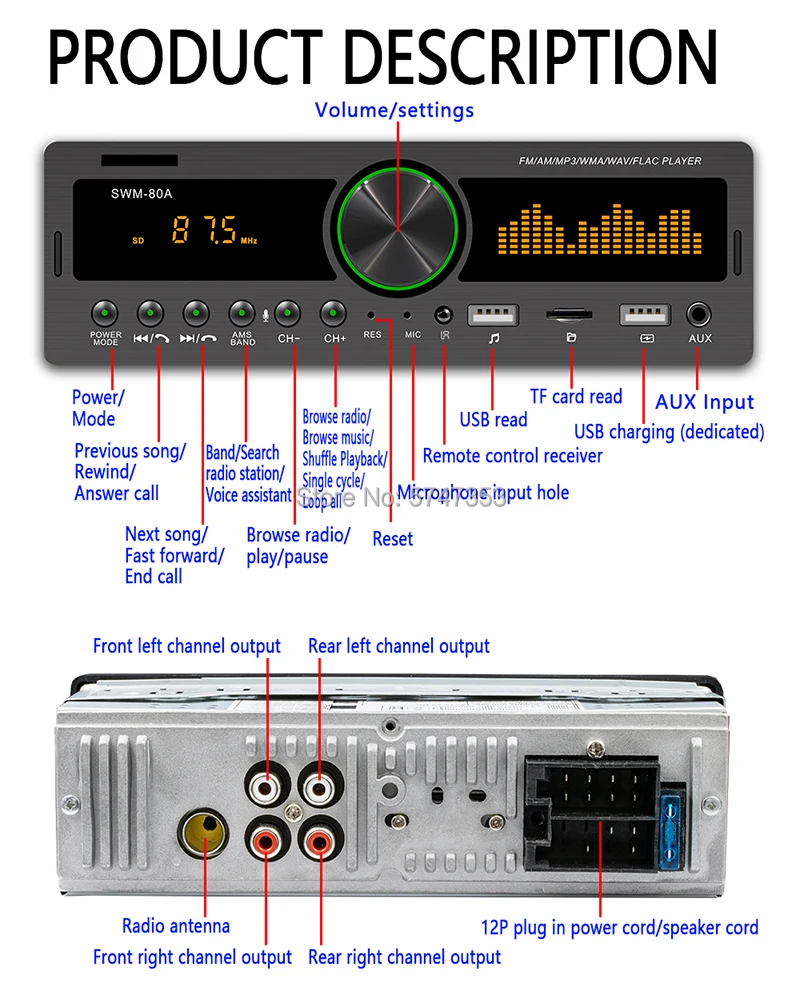 1 din bluetooth автомобильное радио 80A