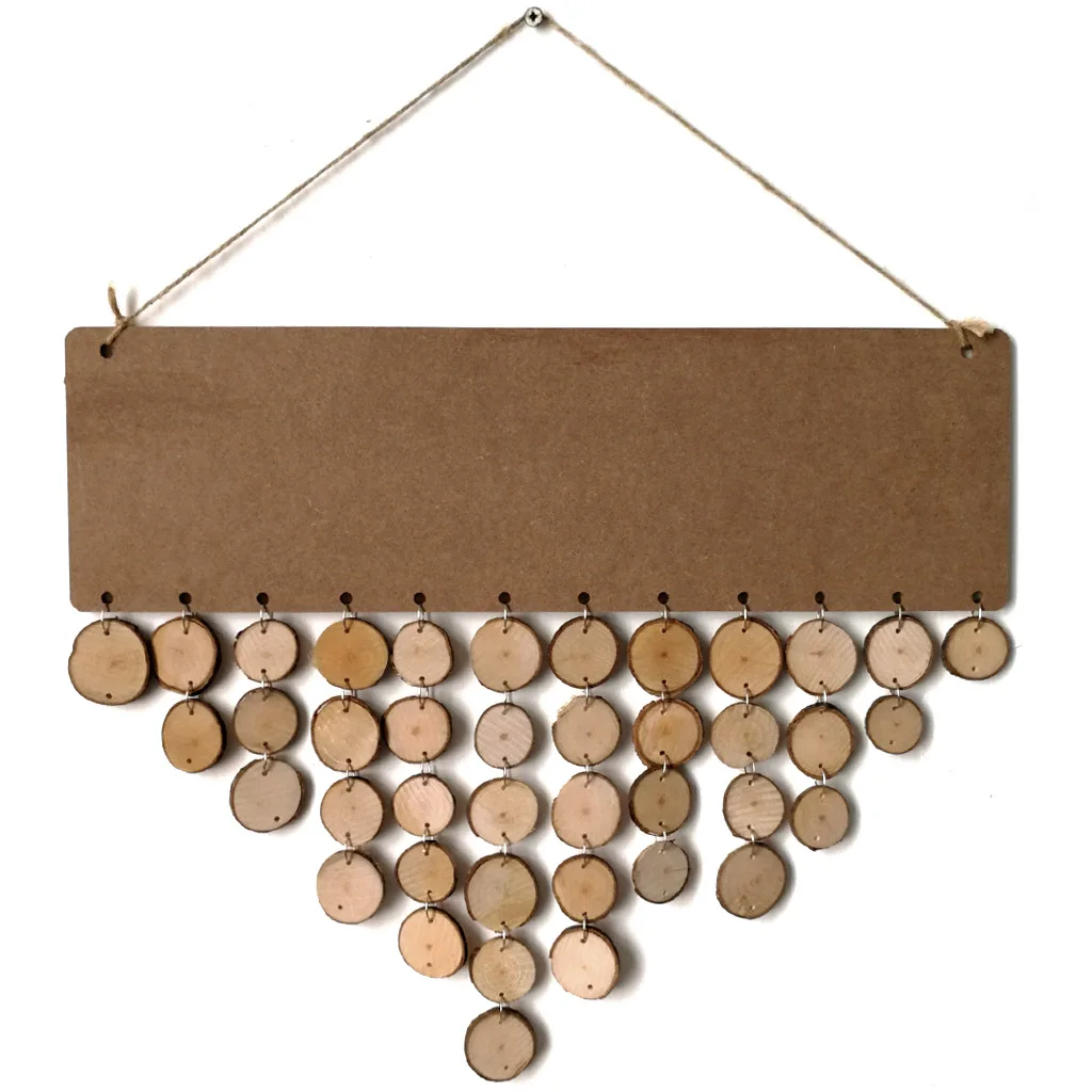 1 подвесная табличка с изображением деревянного календаря + 1 прочная пеньковая веревка + 50 деревянных подвесок + 50 соединительных колец