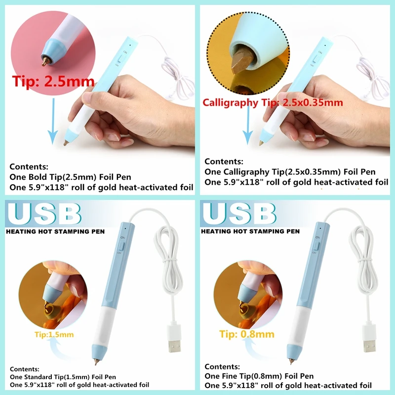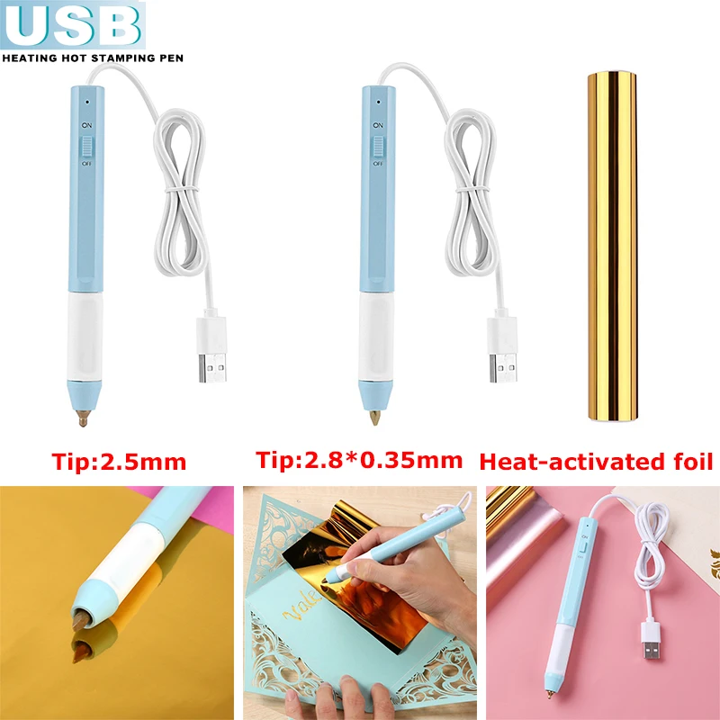 Наконечник 2,5 мм/2,5*0,35 мм каллиграфия USB нагревательная Горячая ручка для стемпинга с золотой термоактивированной фольгой для DIY Foil ing Project 2020 New