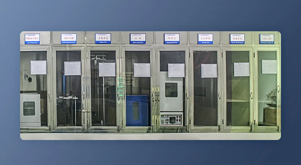 (simulated high altitude low voltage test, extrusion/needle test, heavy impact test, short circuit test, thermal shock test, free fall test, forced discharge test, overcharge/over discharge test)