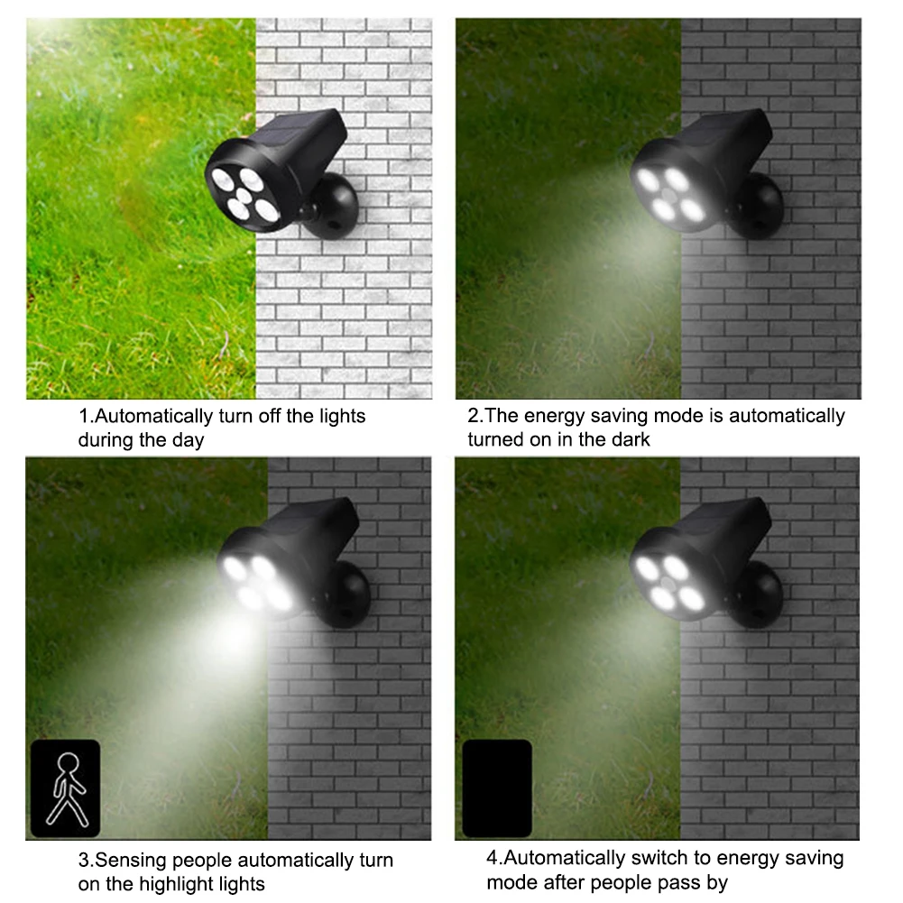 -Легко установить, степень защиты IP65, с резиновой вилкой и винтами, может быть установлен на стене. Невидимый переключатель отверстия и водонепроницаемый дизайн гарантируют, что наши солнечные огни могут использоваться на открытом воздухе даже в суровых погодных условиях. Идеальное решение для освещения гаражей, газонов, террас или смотровых площадок.