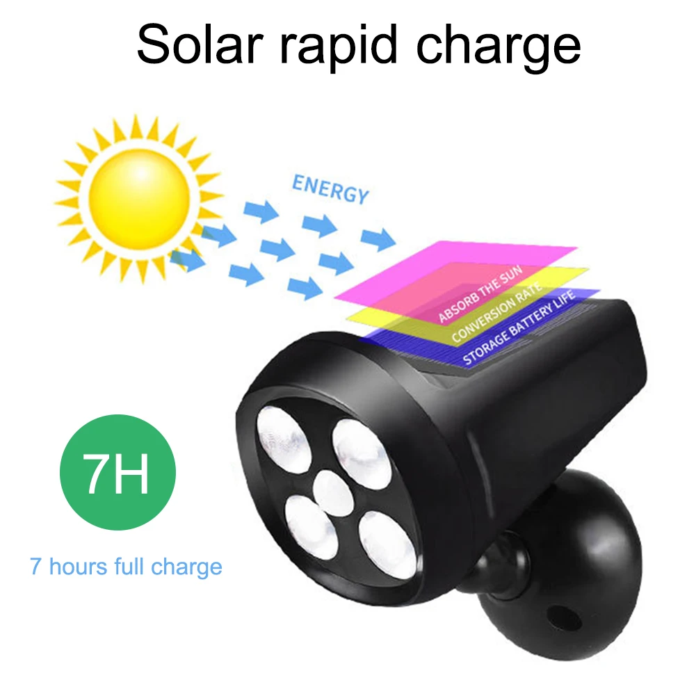 -Автоматический светильник-выключение и зарядка в течение дня, вход в режим энергосбережения в режиме ожидания в ночное время, люди запустят высокий светильник, пройдя через диапазон обнаружения, И затем переключитесь в энергосберегающий режим, когда люди уйдут.