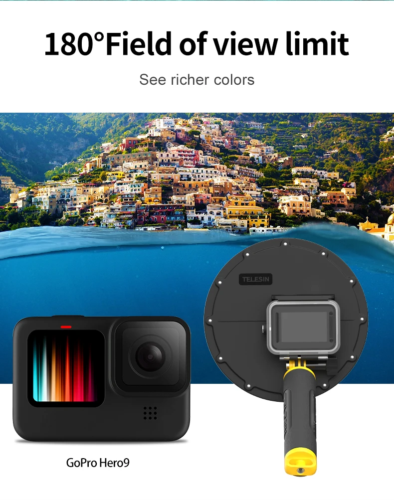 TELESIN 6 ''купол порт 30 м водонепроницаемый корпус чехол с плавающей ручкой триггер для GoPro Hero 9 черный подводный чехол