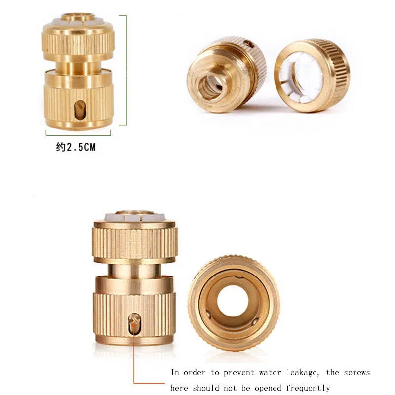 1. Это концевые соединители шланга, если есть вода в водопроводе, вода не будет брызгать, когда соединение остановки воды отключено от водяного пистолета или крана