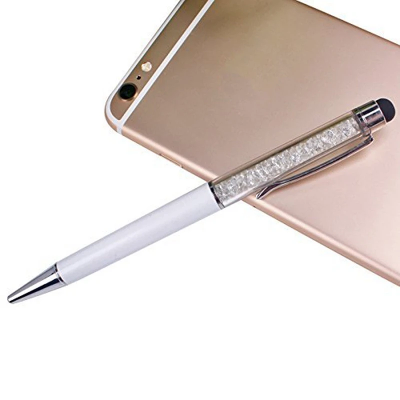 12 штук упак. шикарная блестящая 2-в-1 тонкая Хрустальная ручка-стилус со стразами и чернильными шариковыми ручками (12 цветов)