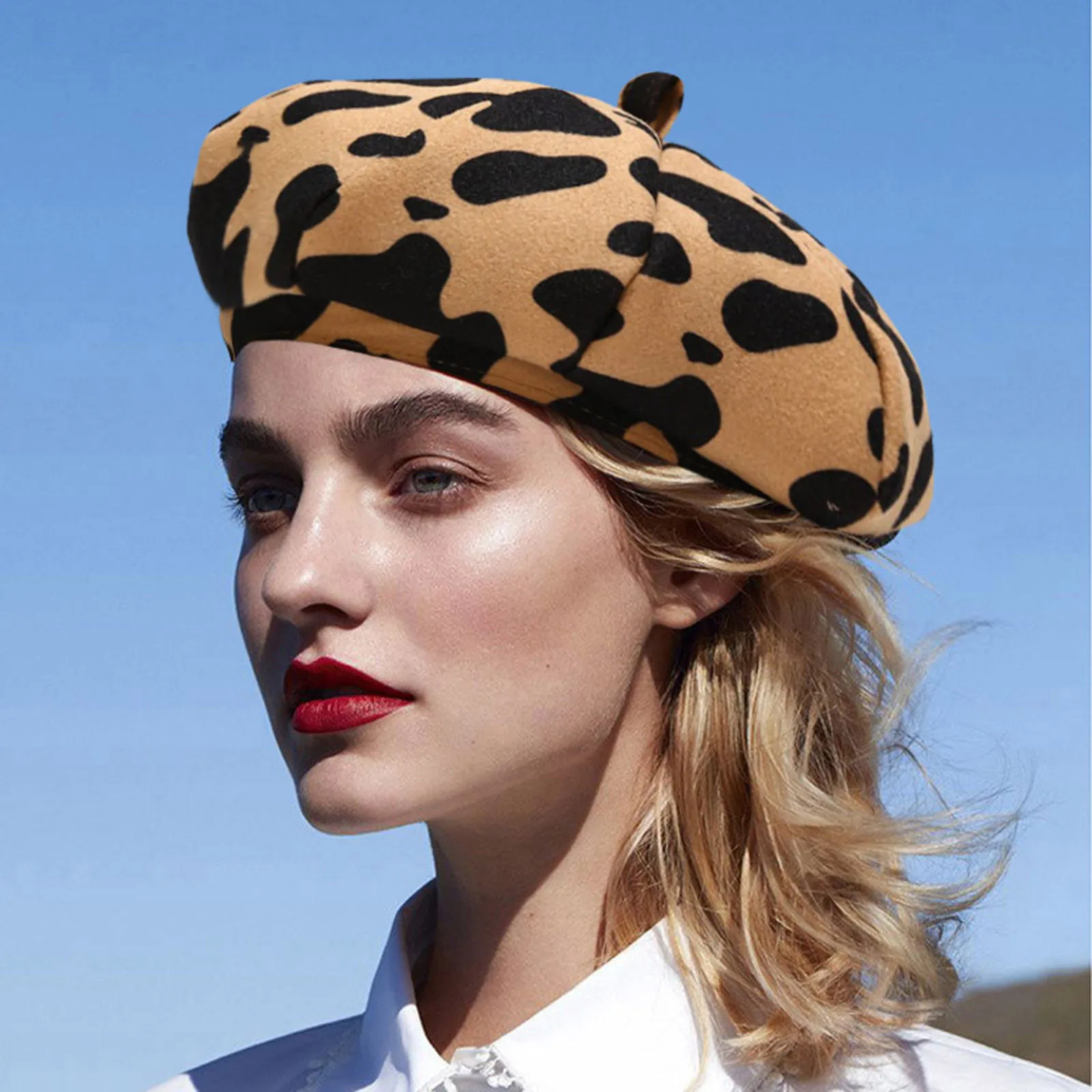 Осенне-зимний винтажный шерстяной берет из коровьей кожи, теплая уличная женская шапка для взрослых