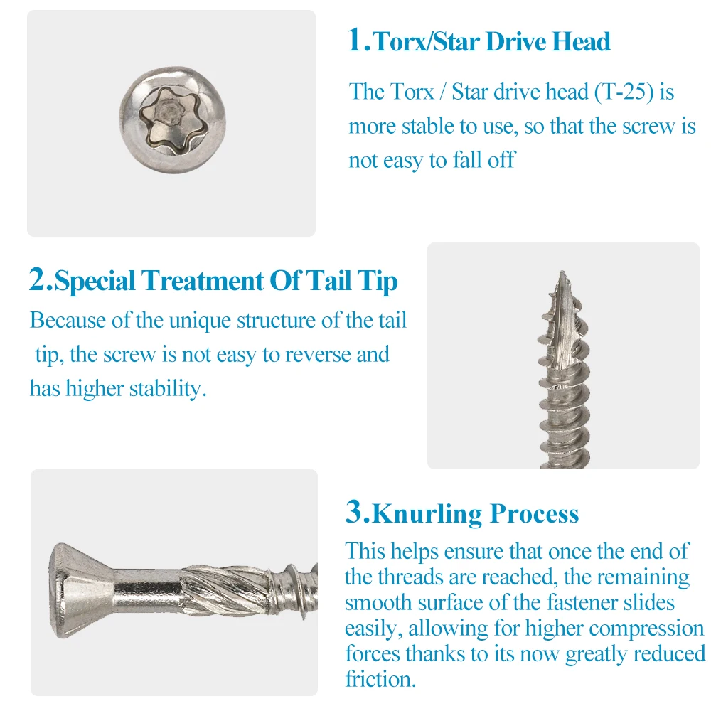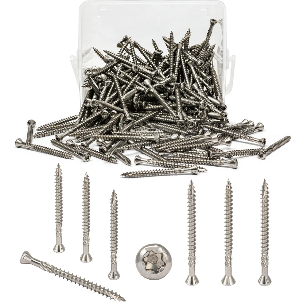 A. Подходит для дерева, палубы, забора и аналогичных наружных конструкций B. Эти винты изготовлены из высококачественной нержавеющей стали 304, которая устойчива к коррозии C. Шнек имеет глубокие и острые нитки и технологию обработки режущего хвоста, которая может быть лучше усилена и заблокирована, способствует удалению сколов, нескользящей, И может быть легко и чисто прибивается в палубу, ДВП, дерево и т. Д. D. Наши винты были обрезаны и накатаны. Они изготовлены из нержавеющей стали 304. Я считаю, что надежность и отличная производительность наших продуктов могут позволить пользователям использовать один продукт для нескольких приложений. Получите хороший опыт для пользователей Е. Два T25Star диска также представлены в нашей коробке