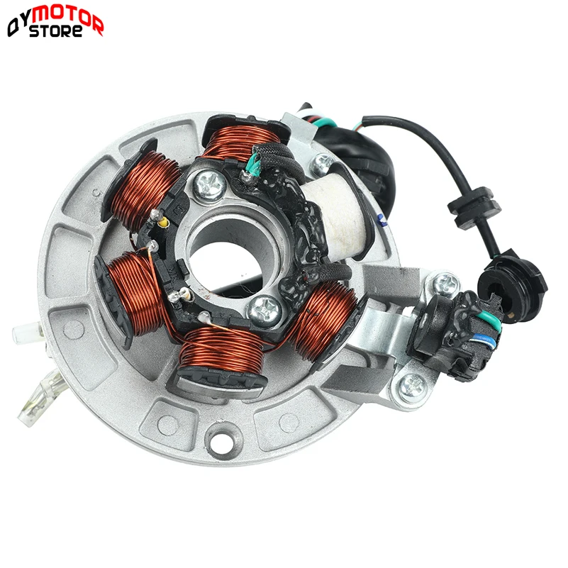 6 катушка зажигания статора Магнето Технические характеристики: -- Производство: Китай (материк) -- 100% Фирменная Новинка -- Материал: Сталь -Посылка включает в себя: 1 x статор Подходит для 55 мм отверстий lifan 1P55FMJ 140cc горизонтальные стартовые двигатели (с воздушным охлаждением, масляным охлаждением) Запчасти для велосипеда-велосипеда