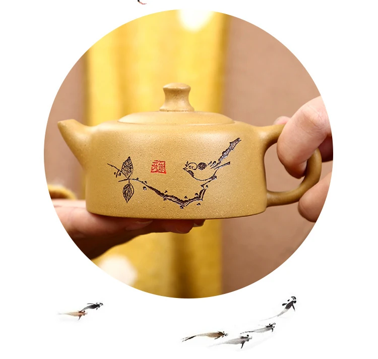 [Писатель] Гонг Чуань чуанрен [Название] цветы и Птичье небо 【Clay material】original чайник ore section грязи 【Capacity】 160cc ± 10cc [Размеры] Общая длина: 13 см Калибр: 6,5 см Общая высота: 5 см [Представление о работе] работа имеет глубокие коннотации, элегантность, тонкое мастерство и полный стиль. Его любят отечественные и зарубежные коллекторы и любители фиолетового песка [Характеристики грязевого материала] песчаная почва тяжелая, как крестьянский фермер. Он используется в течение длительного времени и постепенно показывает свои края. Культивирование сильно меняется, и оно нежное и торжественное. Линии красивые и натуральные, ручки для рта согласованы, а бочка для тела сочетается с тонкой ручкой, которая является более элегантной и благородной.