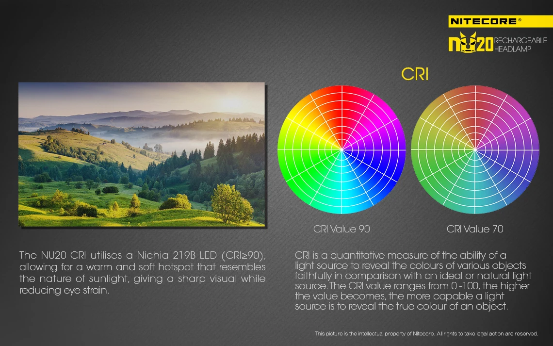 · NU20 CRI: оснащен светодиосветодиодный Nichia 219B, CRI>= 90