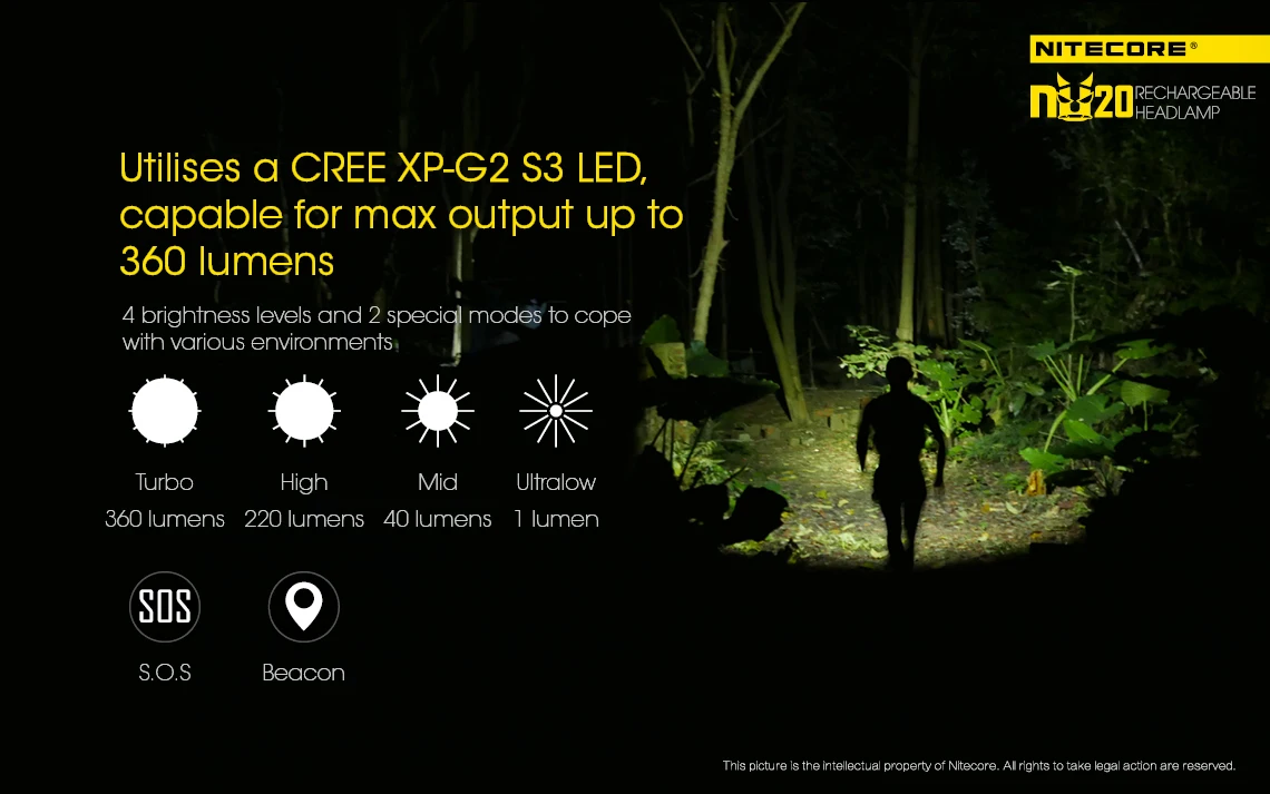 · NU20: оснащен светодисветодиодный CREE XP-G2 S3