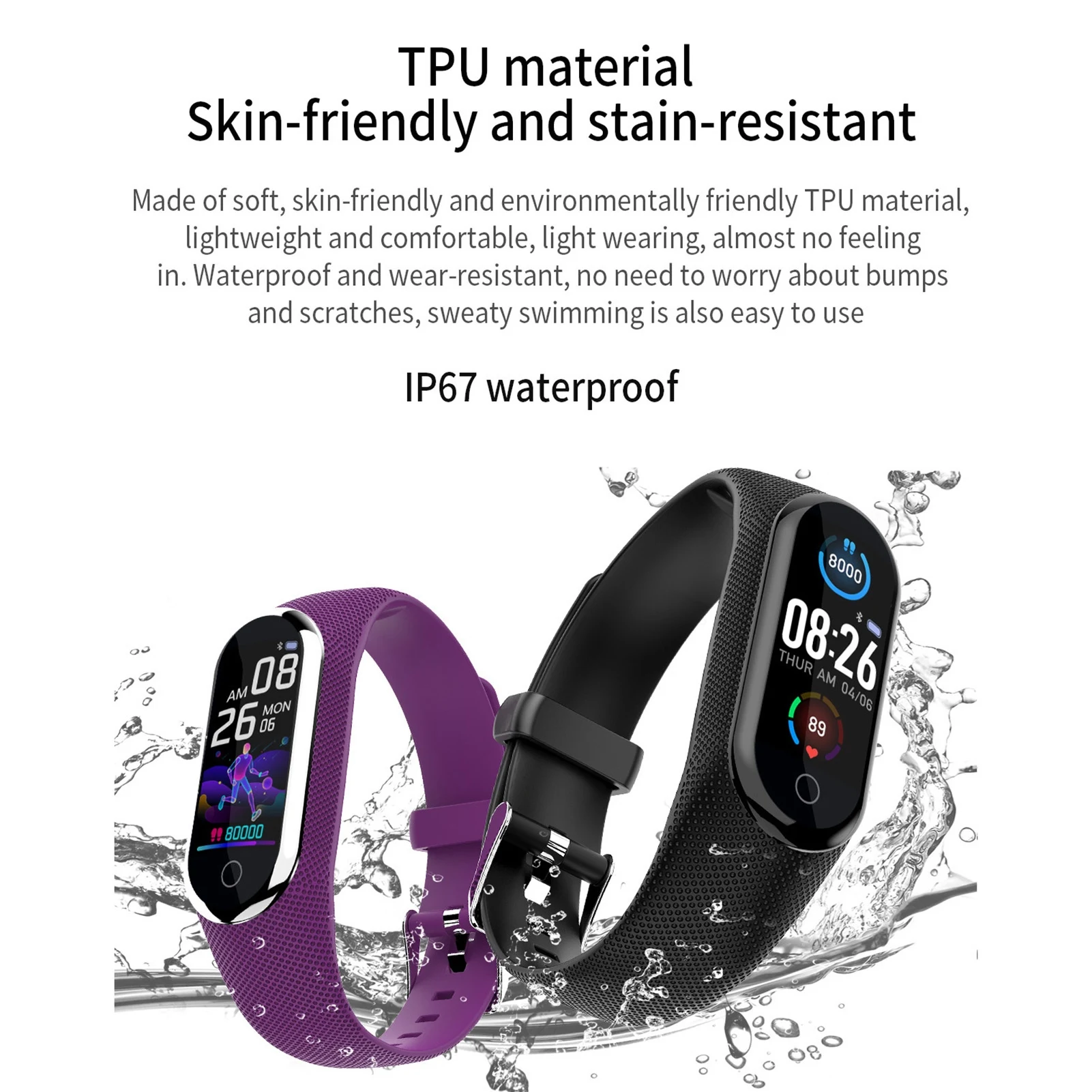Made PC and TPU, the smart bracelet it durable and soft to wear.