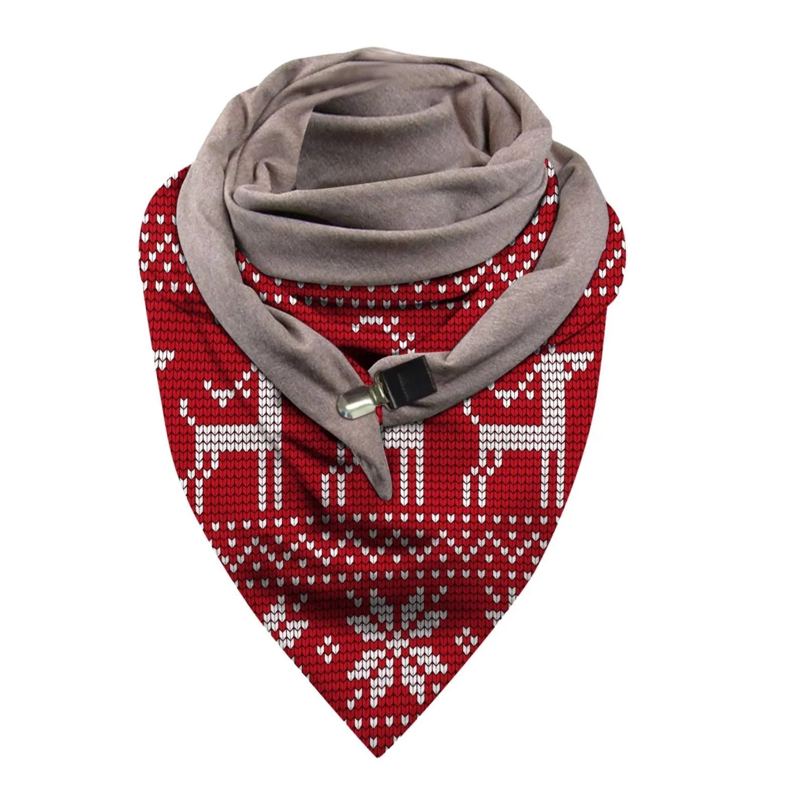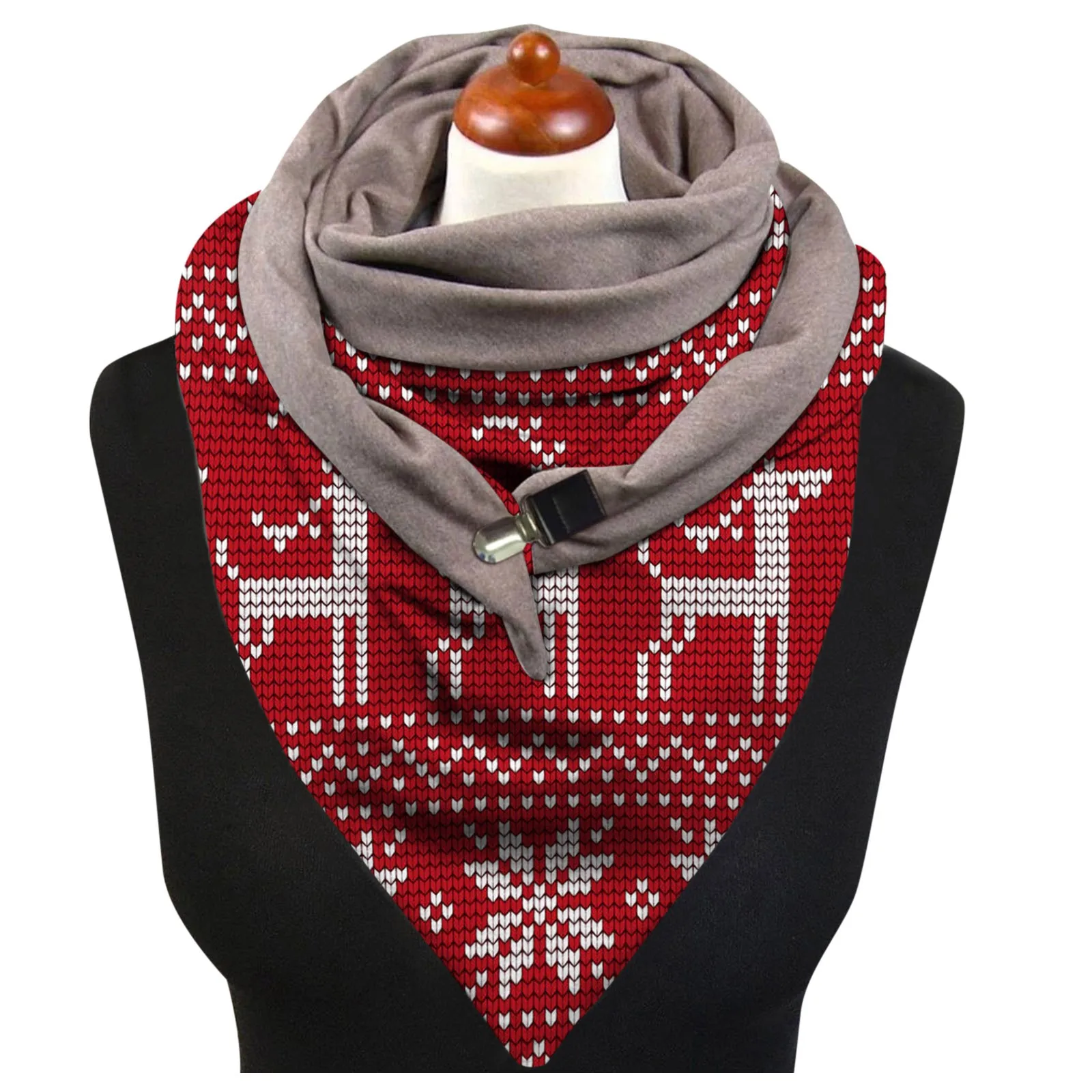 Модная женская Рождественская печать Кнопка мягкая обертка повседневные теплые шарфы шали