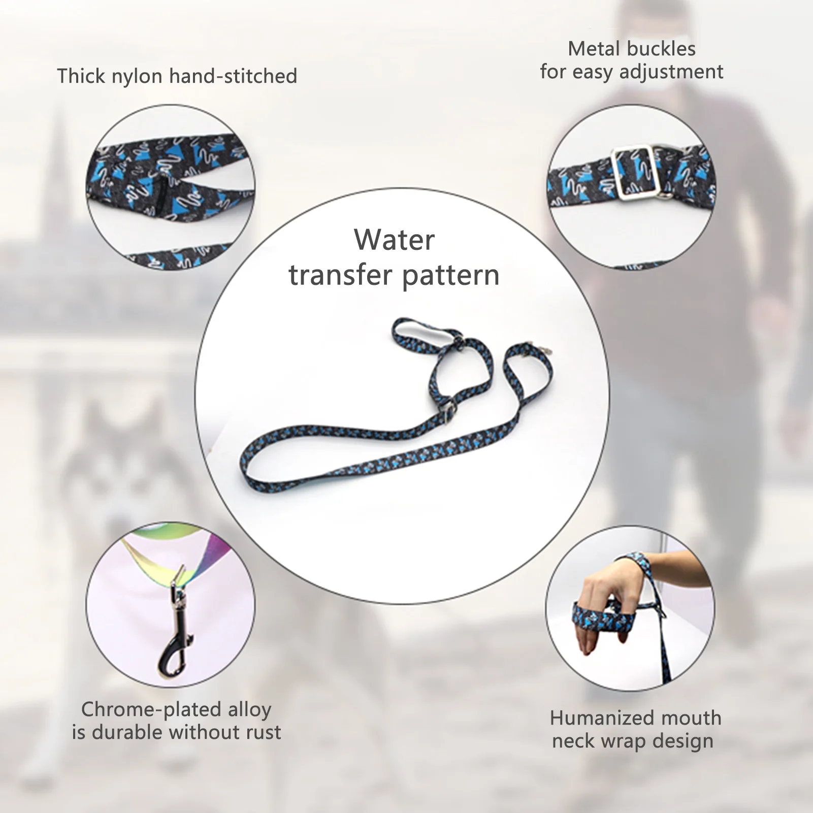 Высококачественный нейлоновый поводок для домашних животных, регулируемая герметичность, подходит для различных размеров домашних животных, мягкая и высокая эластичность ручного вытягивания, анти-царапин, практичный воротник и рот набор интегрированный дизайн.