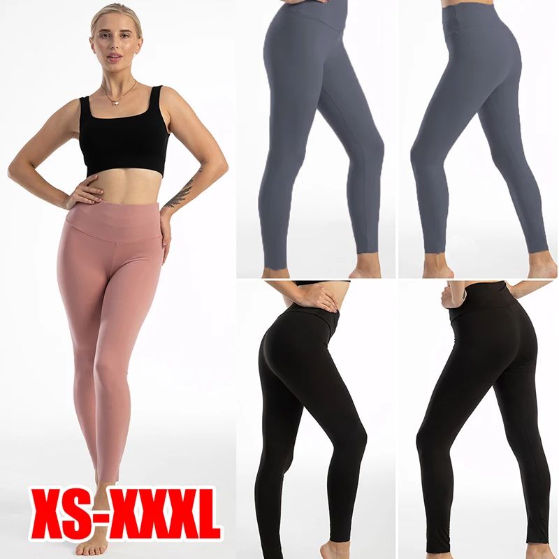 Однотонные леггинсы с высокой талией, женские леггинсы для бега, тренировок, занятий йогой, колготки, высокая посадка, полная длина, спортивные Леггинсы для фитнеса