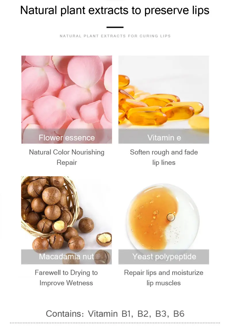 Увлажняет потрескавшиеся губы с тонкими линиями, улучшает шелушение губ и проблемы с сухостью