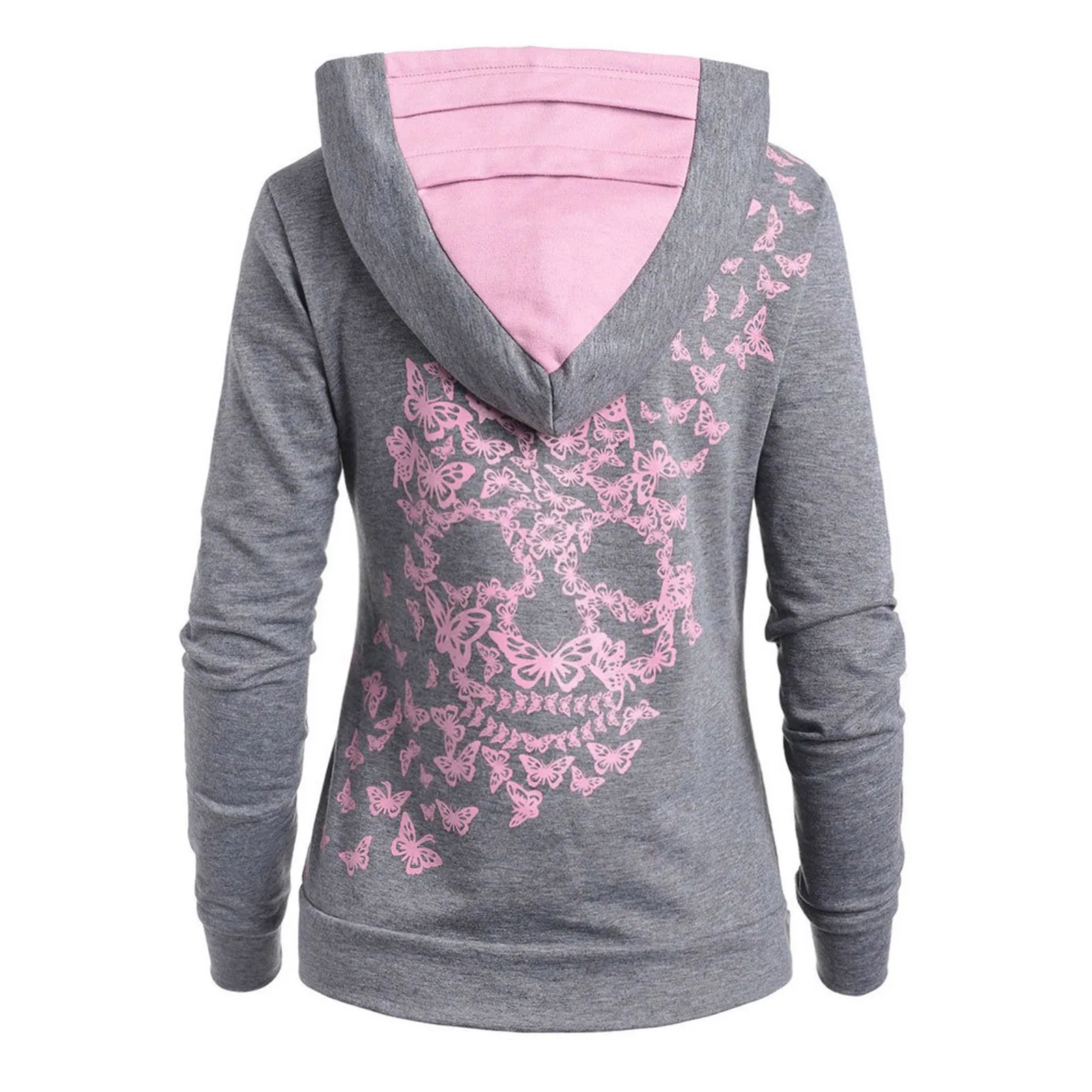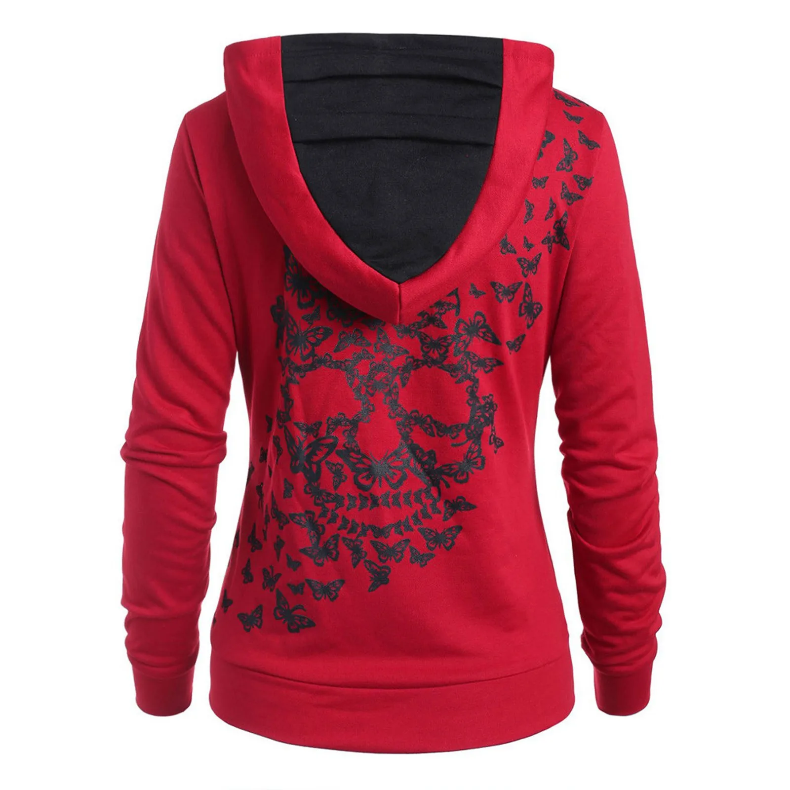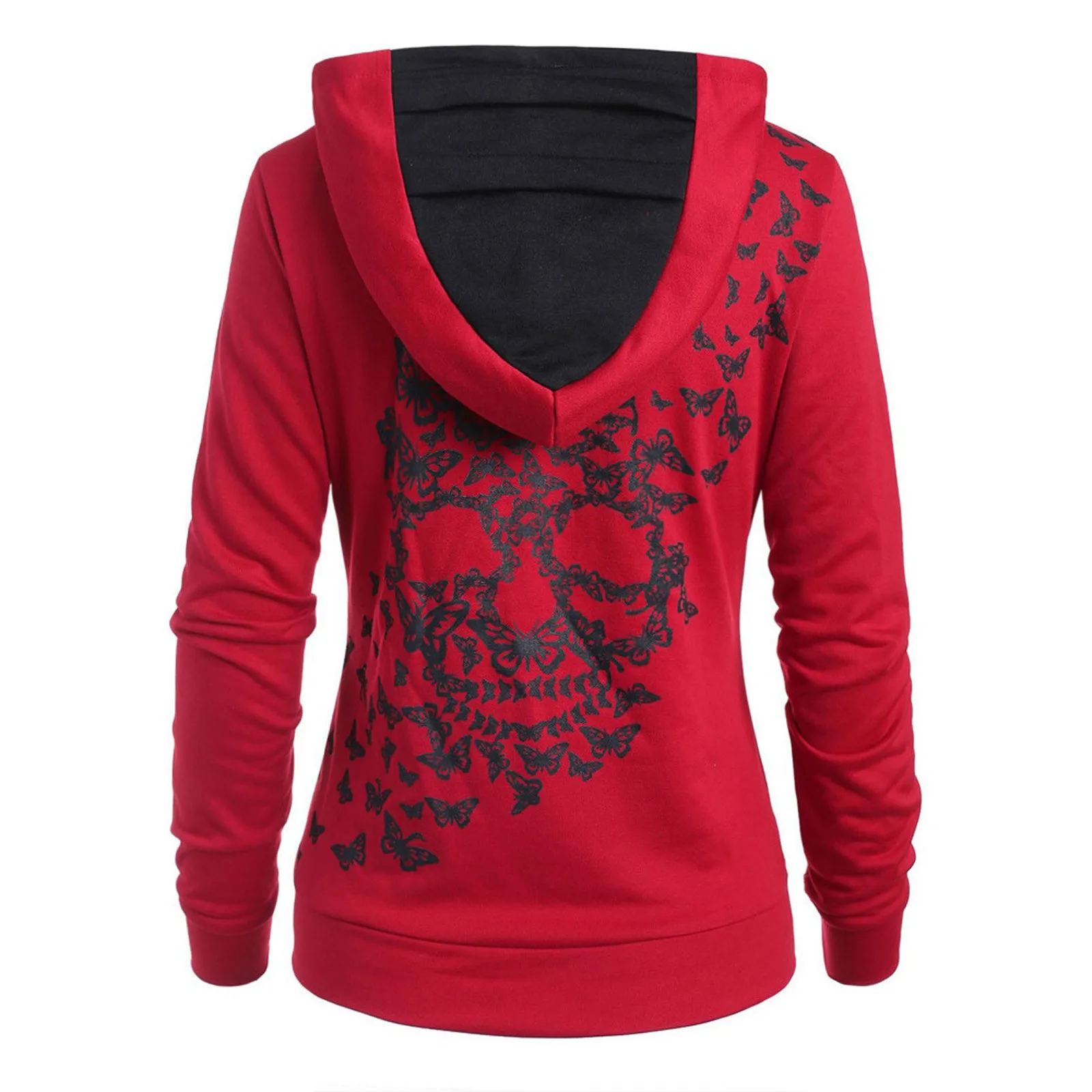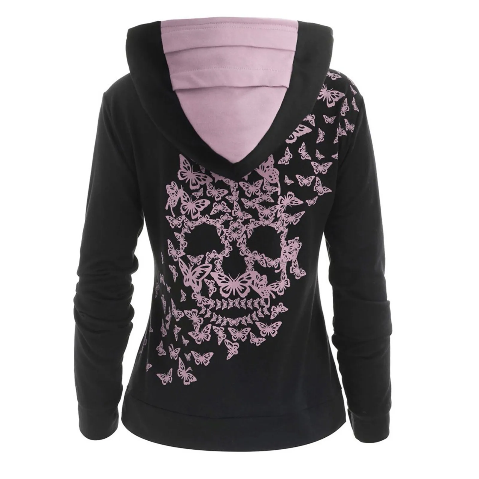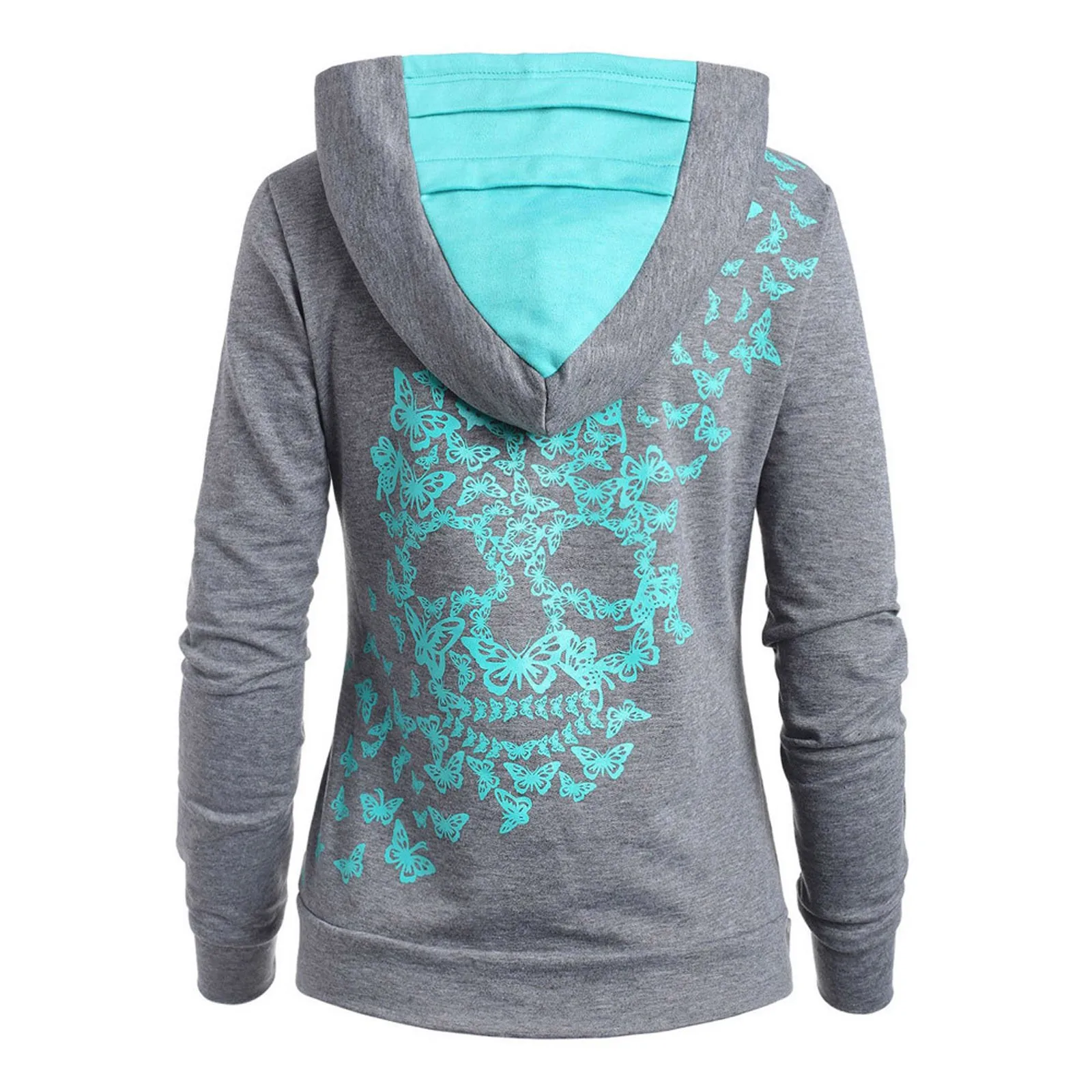 Женская модная толстовка с капюшоном и принтом бабочки и черепа
