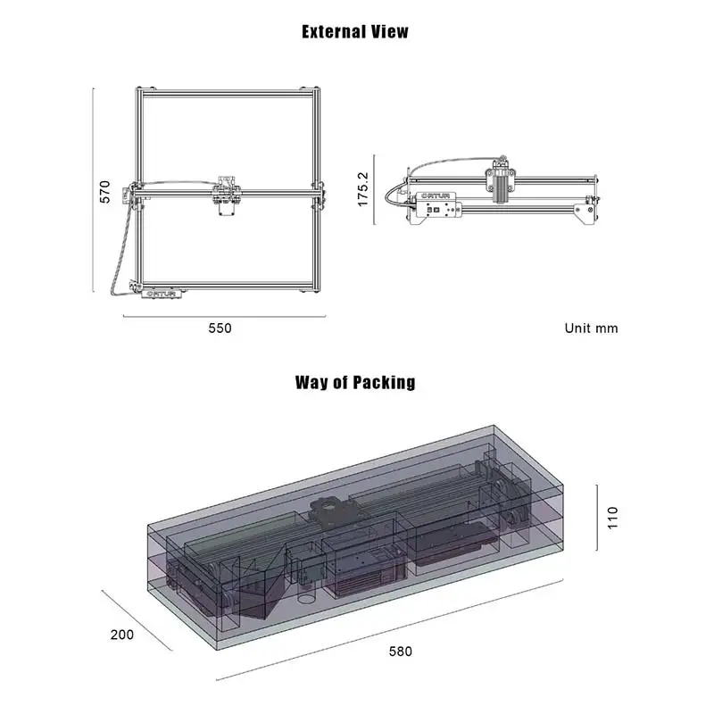 ● Фокусное расстояние по умолчанию: 55 мм для лазерного модуля 15 Вт и 20 Вт; 58 мм для лазерного модуля 7 Вт