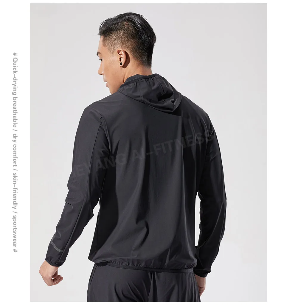 Новая быстросохнущая и дышащая спортивная куртка с капюшоном для мужчин, спортивная одежда для фитнеса, футбола, Уличная Повседневная одежда для бега, велоспорта, спортивная одежда